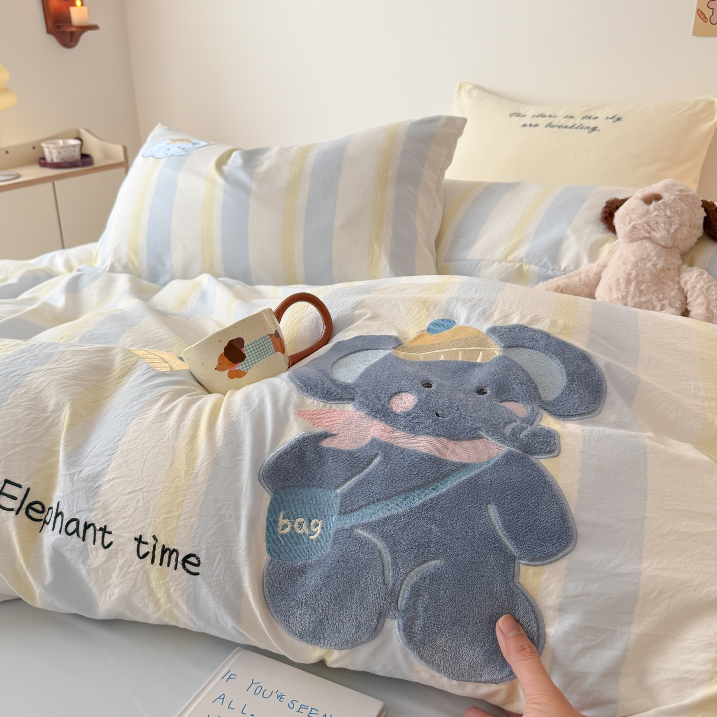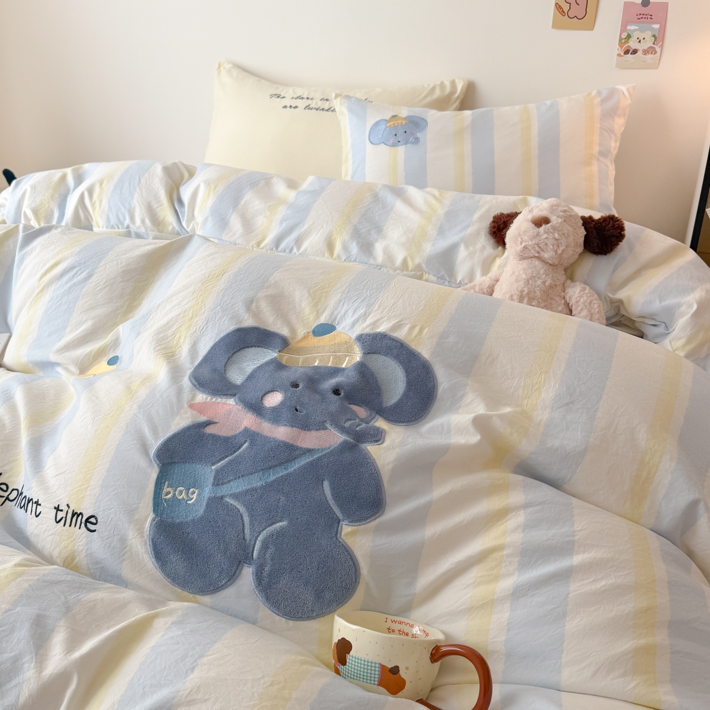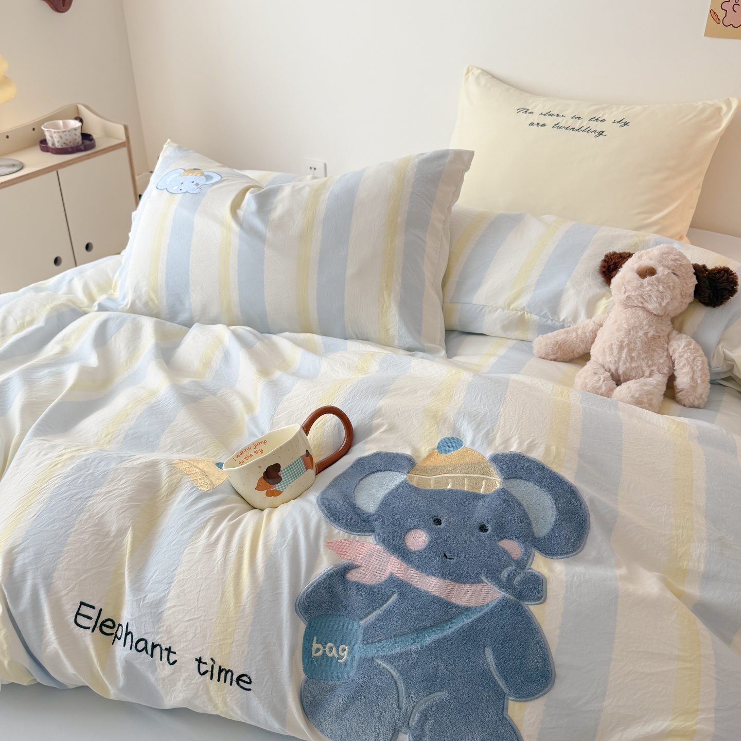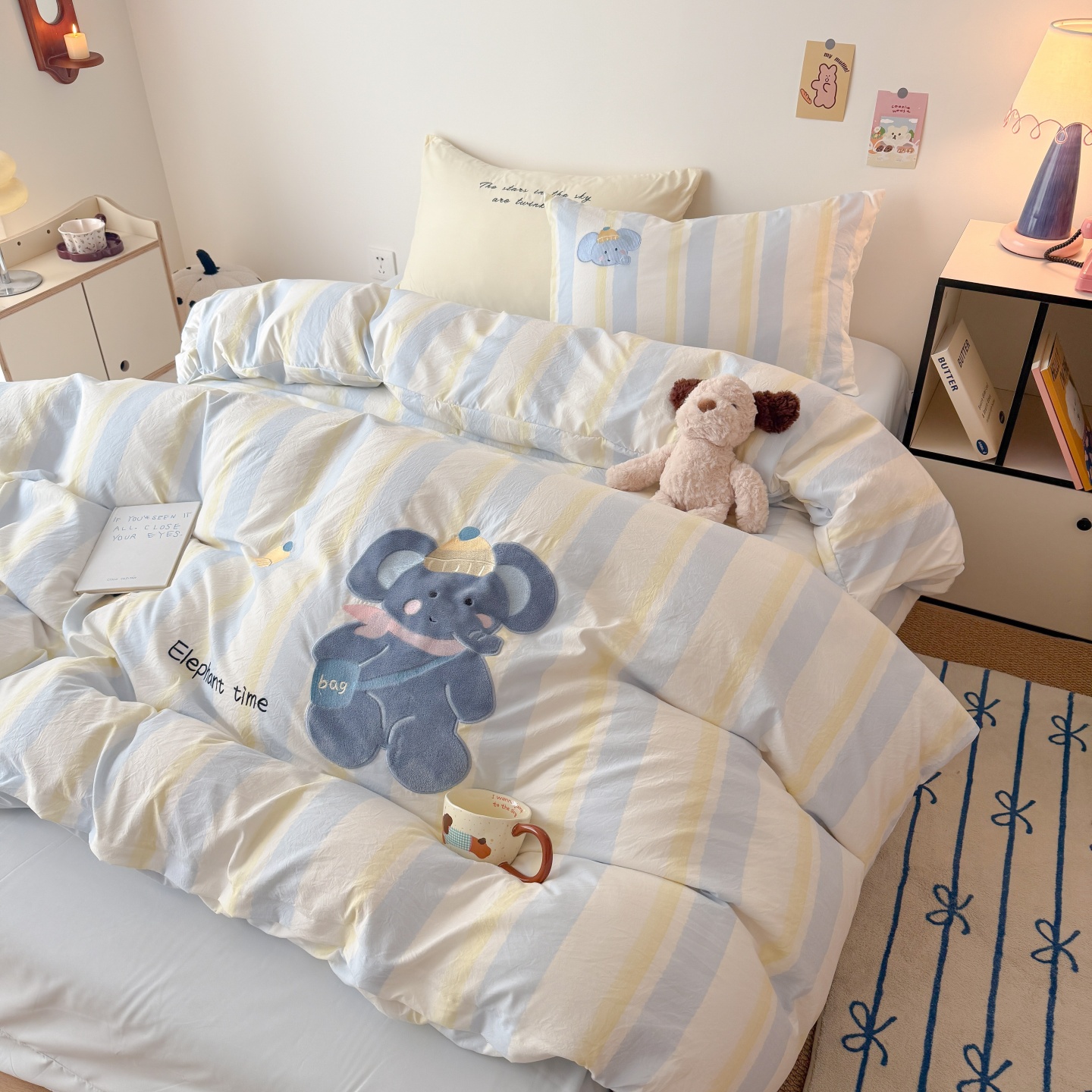 吾欢心 2026春夏新款水洗棉床盖款四件套夏被四件套 萌萌小象