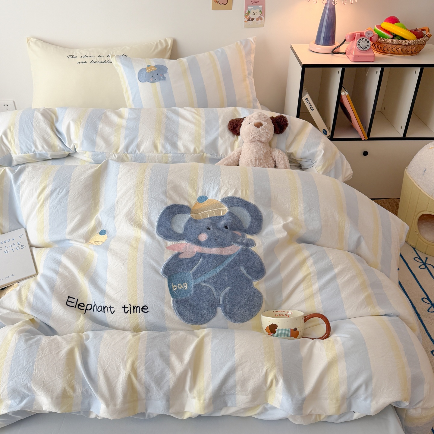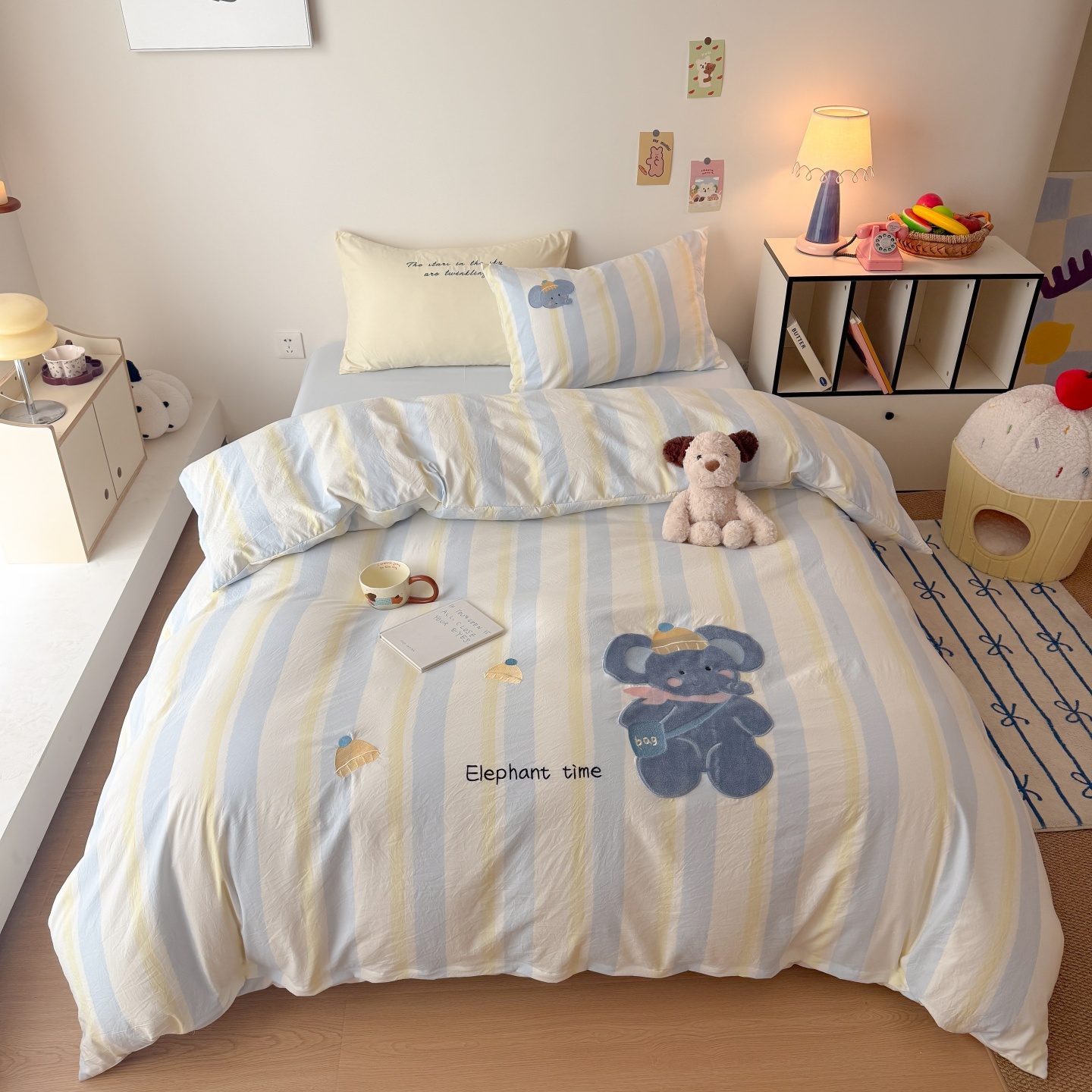 商品名称:吾欢心 2026春夏新款水洗棉床盖款四件套夏被四件套 萌萌小象