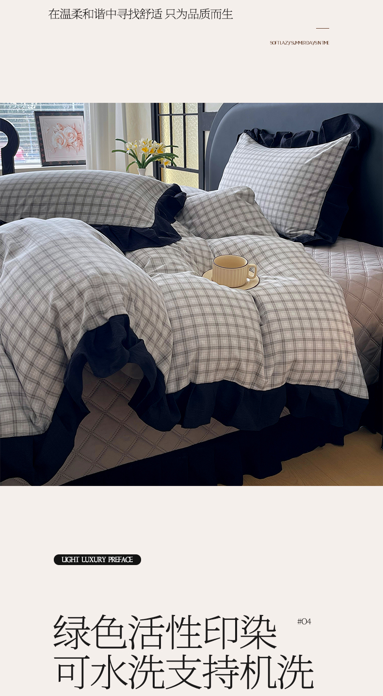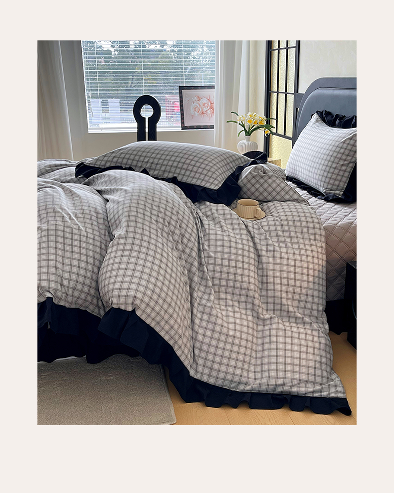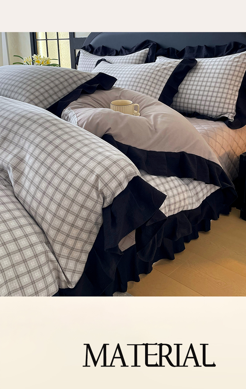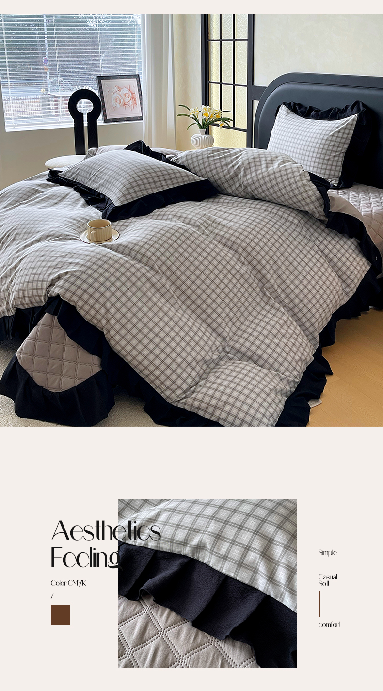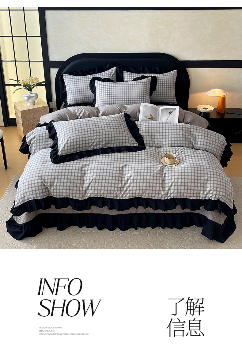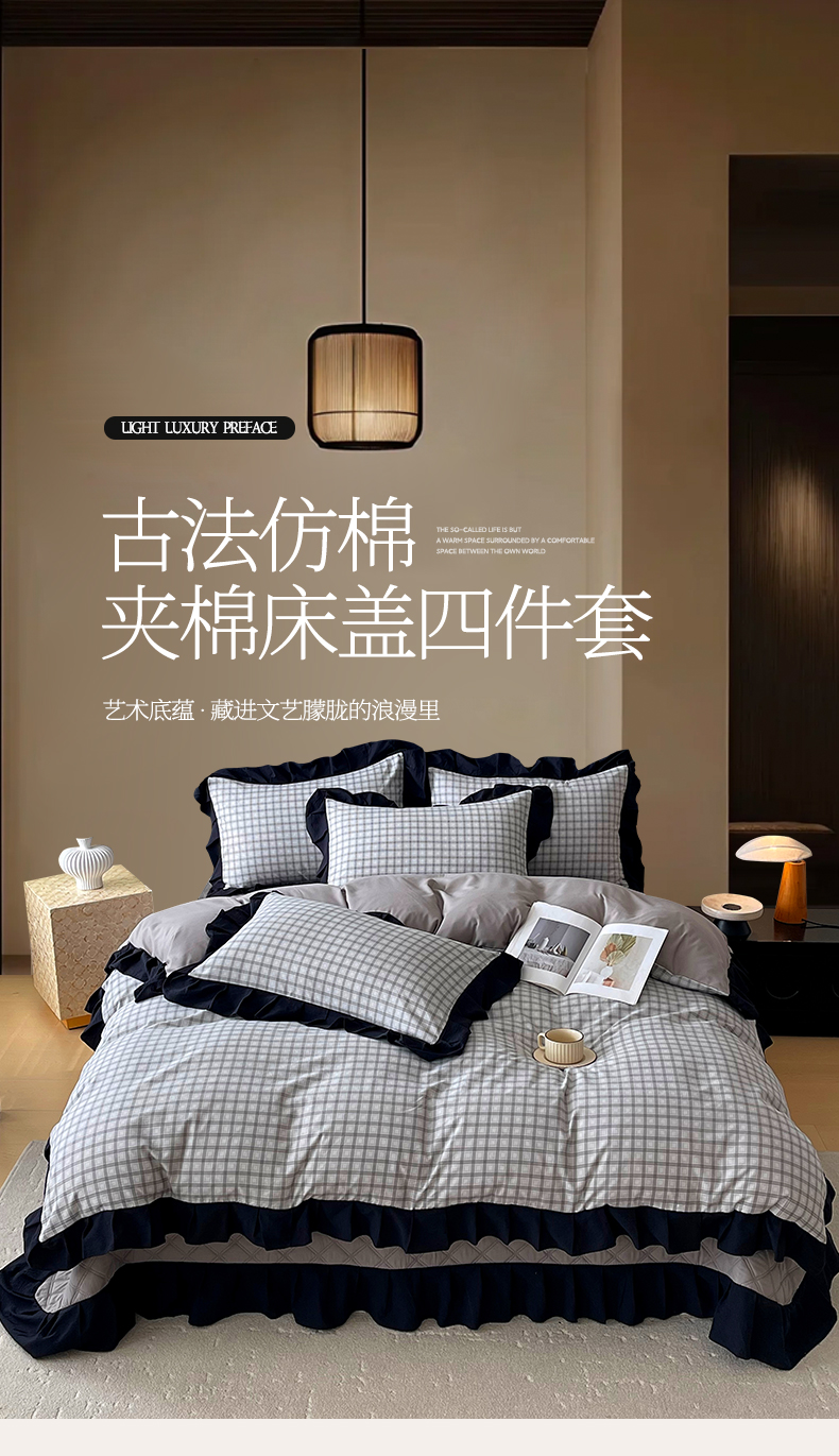 商品名称:麦田家纺 2026新款花边夹棉床盖四件套-西西里岛 西西里岛-山灰