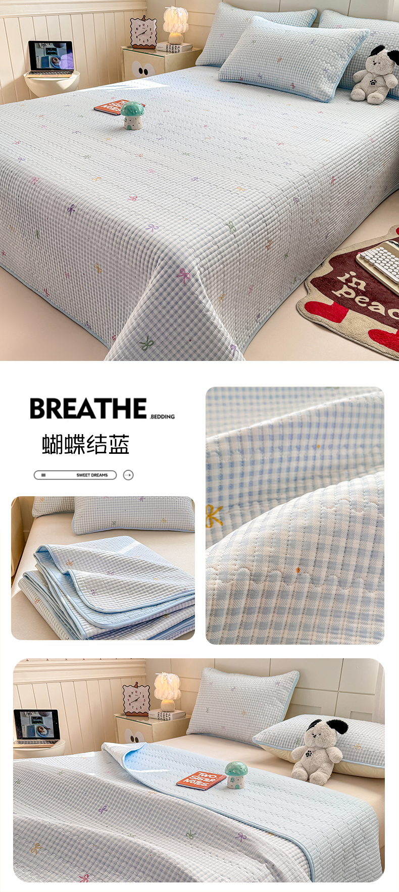 • 91家纺网 家纺一手货源 找家纺 康纳利 2026新款全棉床盖学生夹棉薄款床盖床垫三件套四季通用 小新一家