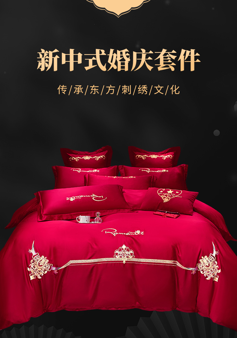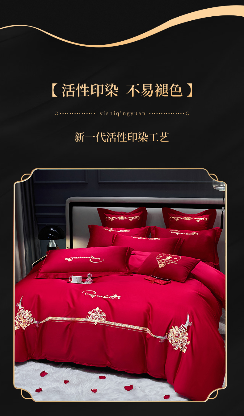 当前位置: 91家纺网 > 商品网购 > 床品套件 > 四件套 > 婚庆四件套 > 慕她家纺 2026年磨毛亲肤棉婚庆四件套大红色刺绣结床上用品 爱的约定