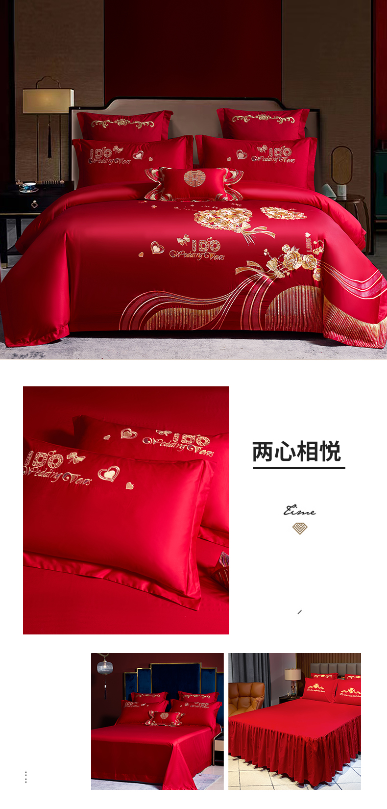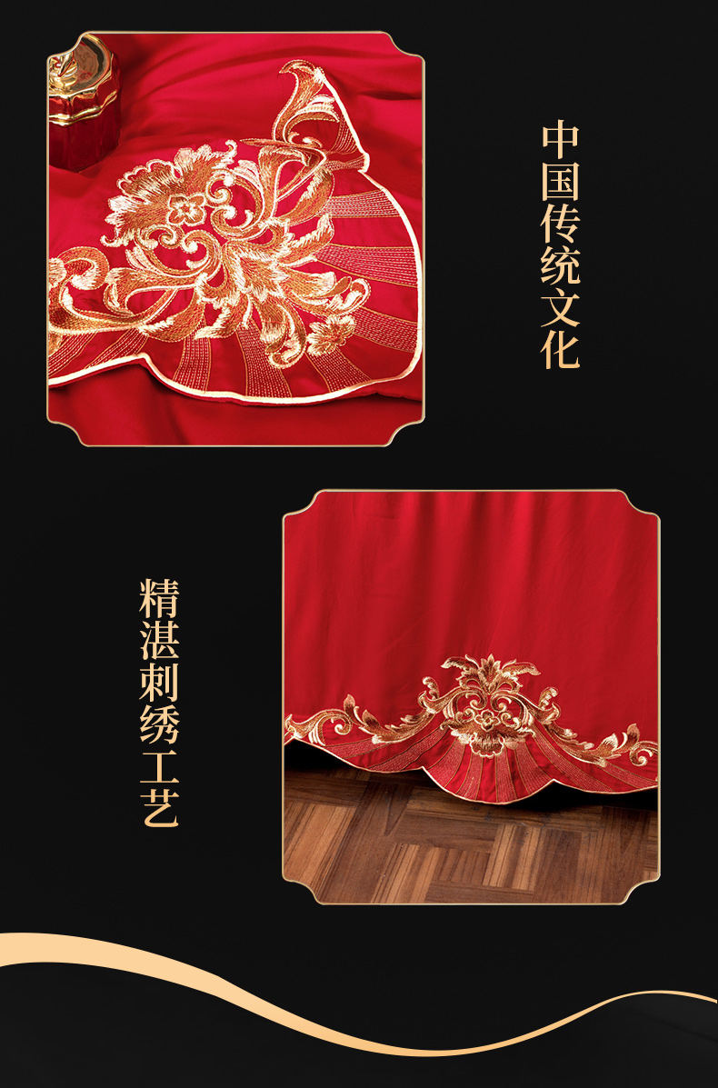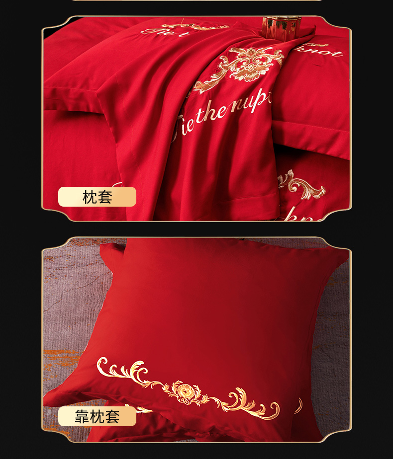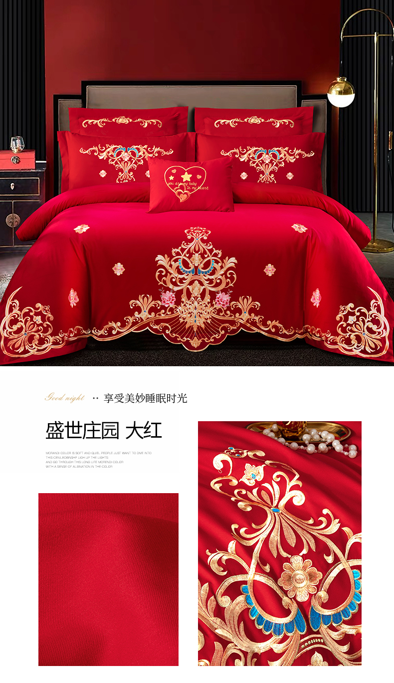 当前位置: 91家纺网 > 商品网购 > 床品套件 > 四件套 > 婚庆四件套 > 慕她家纺 2026年磨毛亲肤棉婚庆四件套大红色刺绣结床上用品 天缘巧合