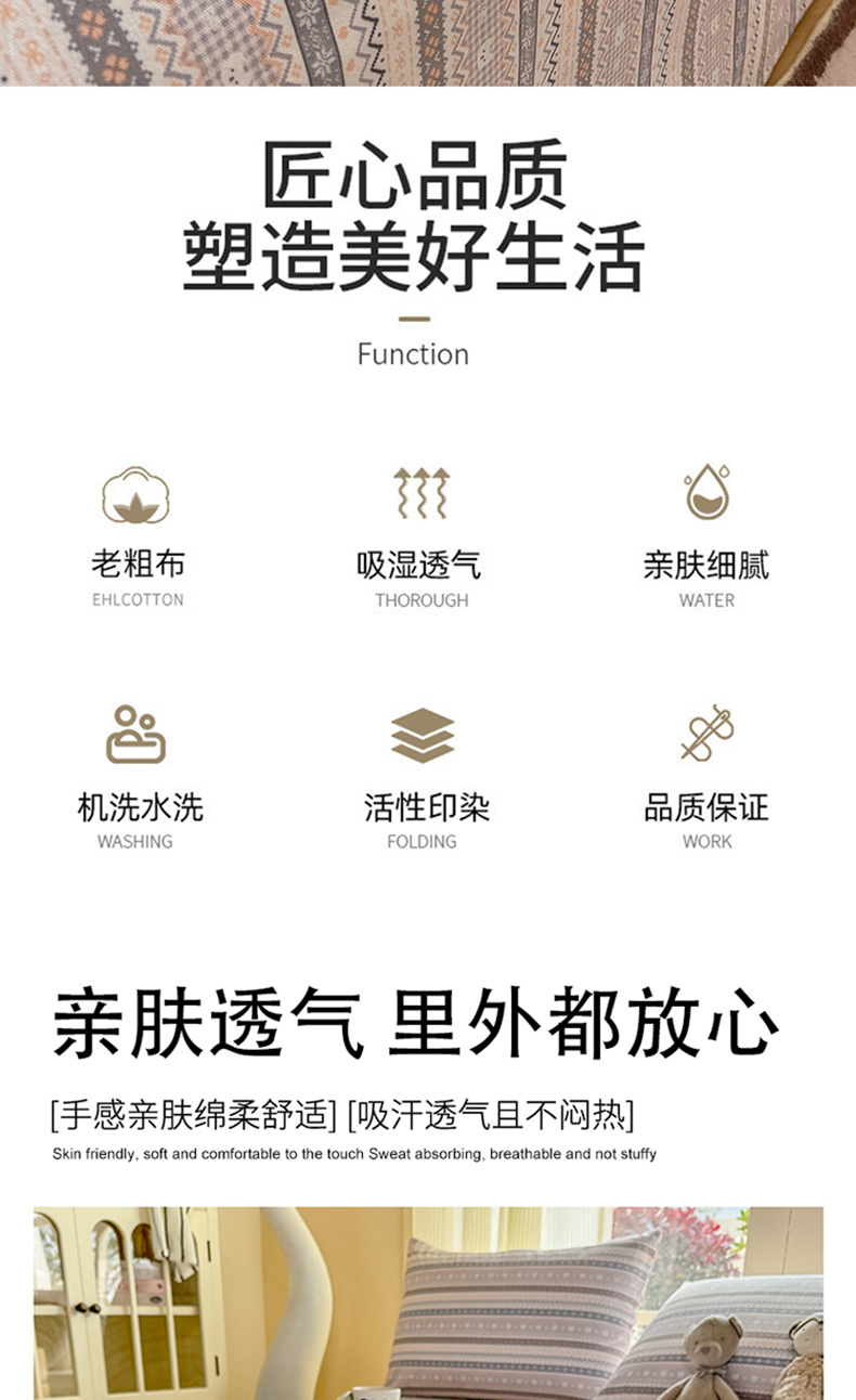 • 91家纺网 家纺一手货源 找家纺 康纳利 2026新款原棉老粗布透气印花床单 格间花事