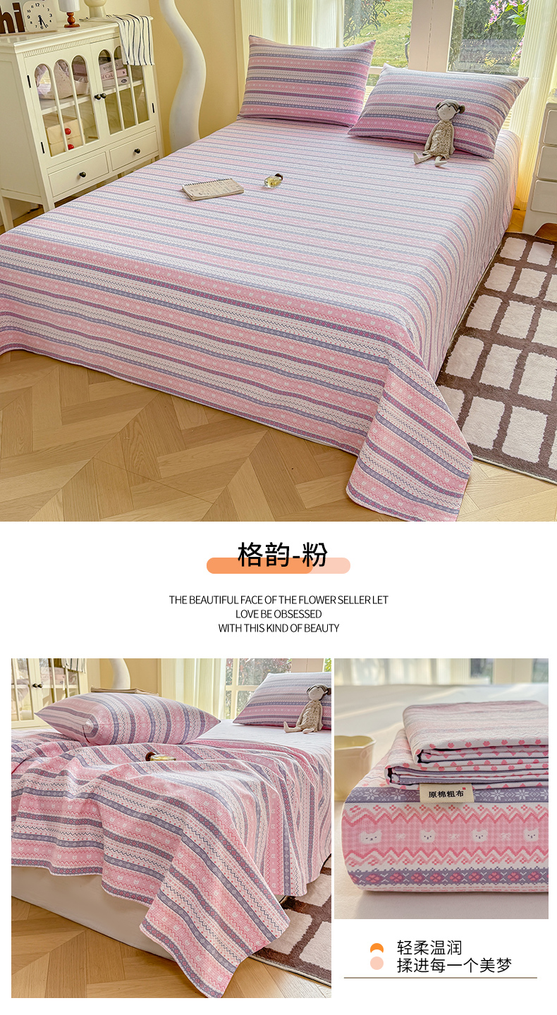 康纳利 2026新款原棉老粗布透气印花床单 格间花事