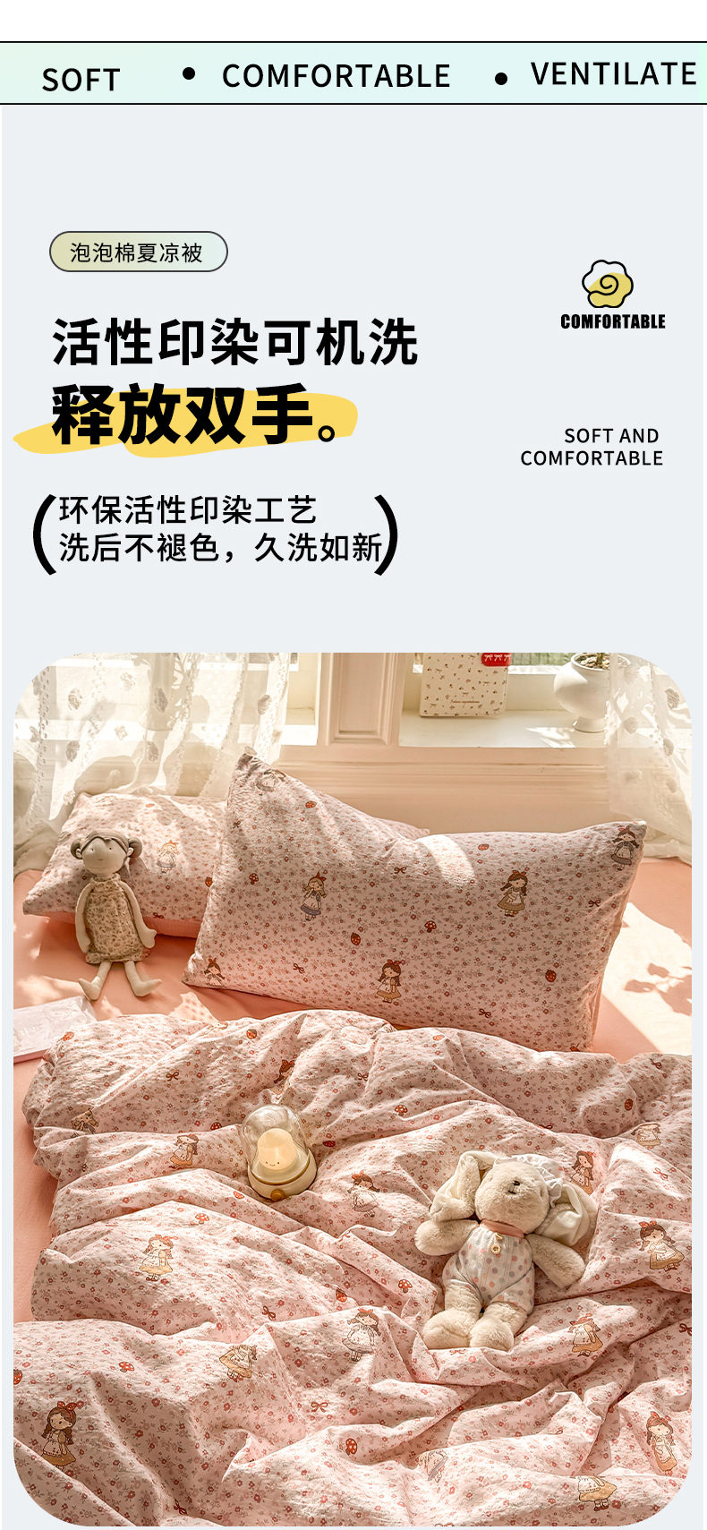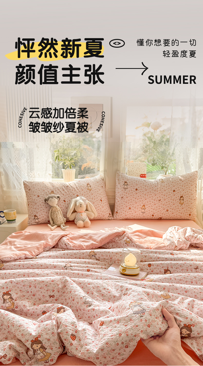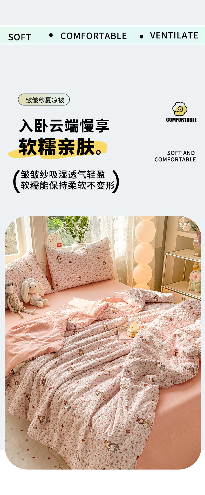 • 91家纺网 家纺一手货源 找家纺 丽美人家纺 2026春夏新款简单款皱皱纱夏被夏凉被空调被 玛丽