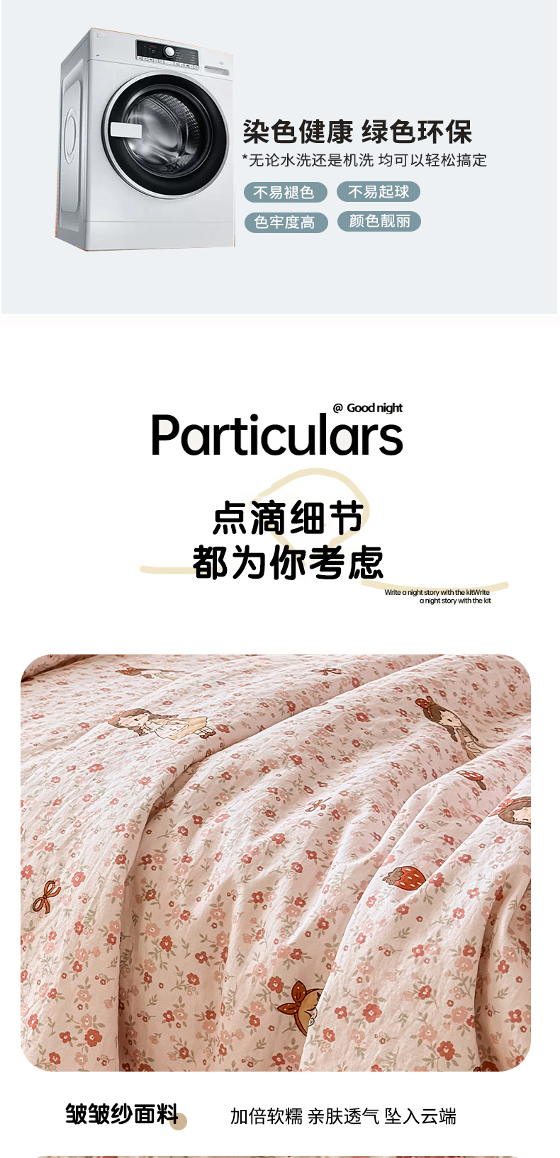 当前位置: 91家纺网 > 商品网购 > 被子 > 夏被 > 丽美人家纺 2026春夏新款简单款皱皱纱夏被夏凉被空调被 玛丽