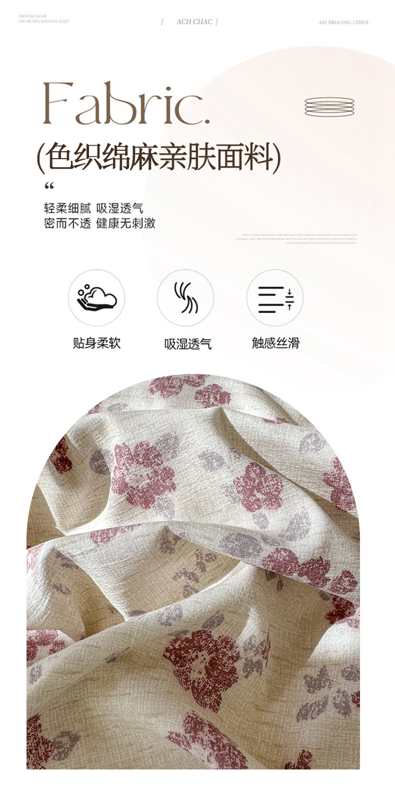 商品名称:铺尚美家纺 2026春夏新品色织棉麻棉纱小露麻系列皱皱纱四件套 棋盘格小熊