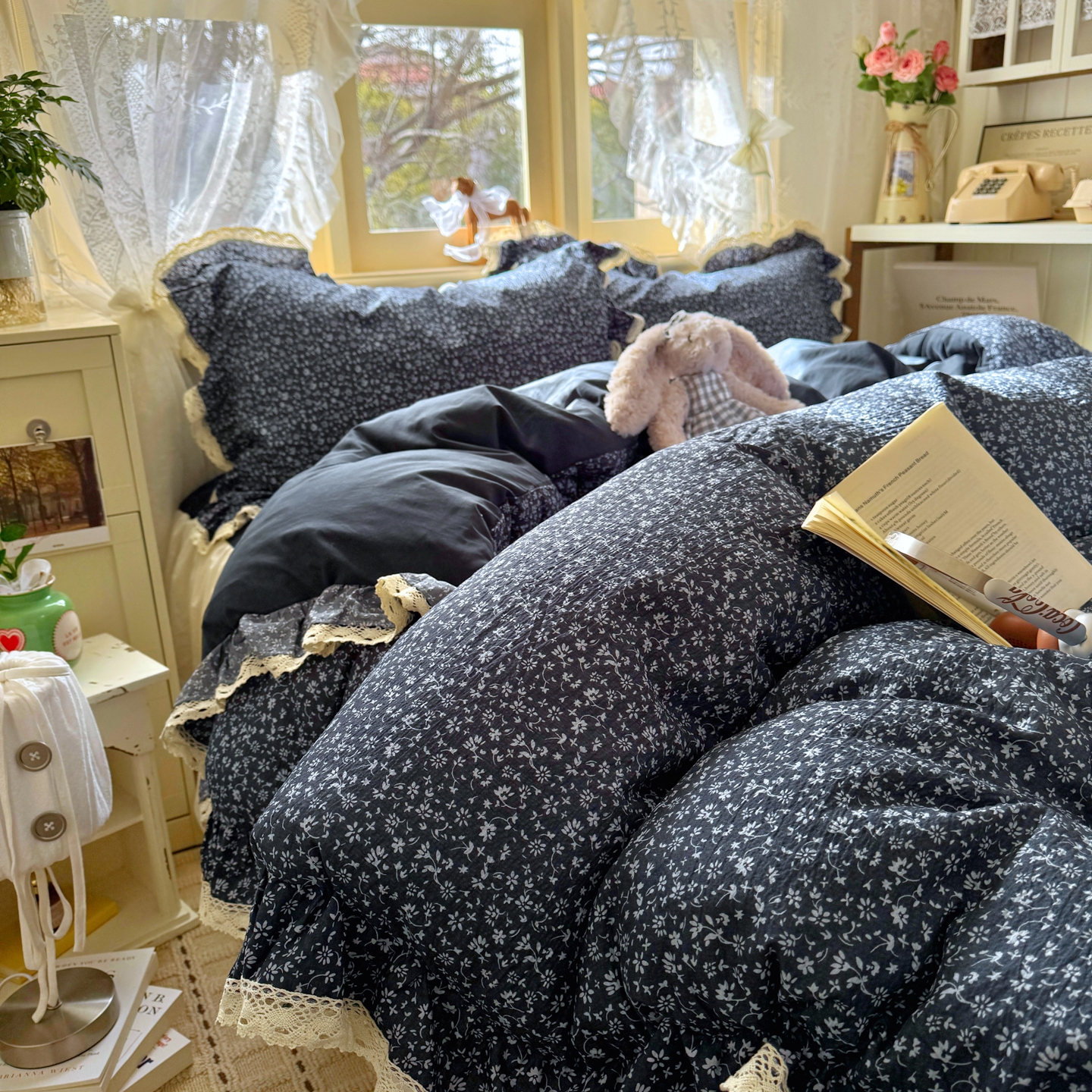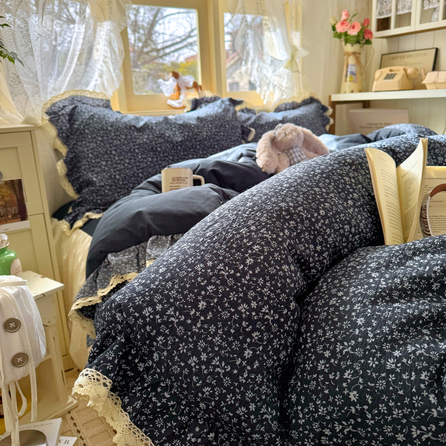 当前位置: 91家纺网 > 商品网购 > 床品套件 > 四件套 > 其它四件套 > 阿曼达 2026新款印花复古小碎花镂空蕾丝花边款四件套 复古小蕾丝-林间序.臧青【专版花型】