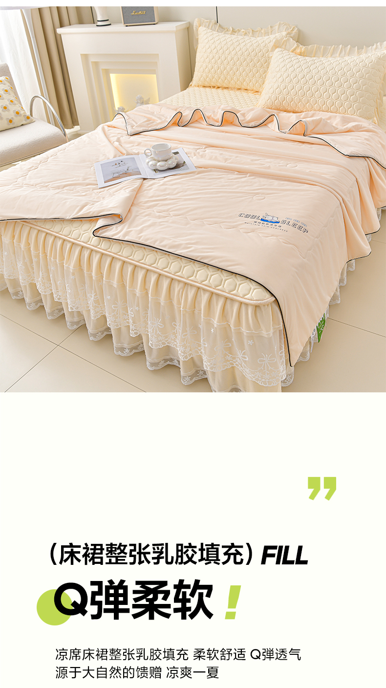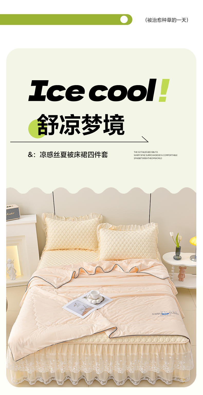 畅畅家纺 2026新款凉感丝唯美床裙夏被凉席三件套夏被四件套 唯美-淡奶黄