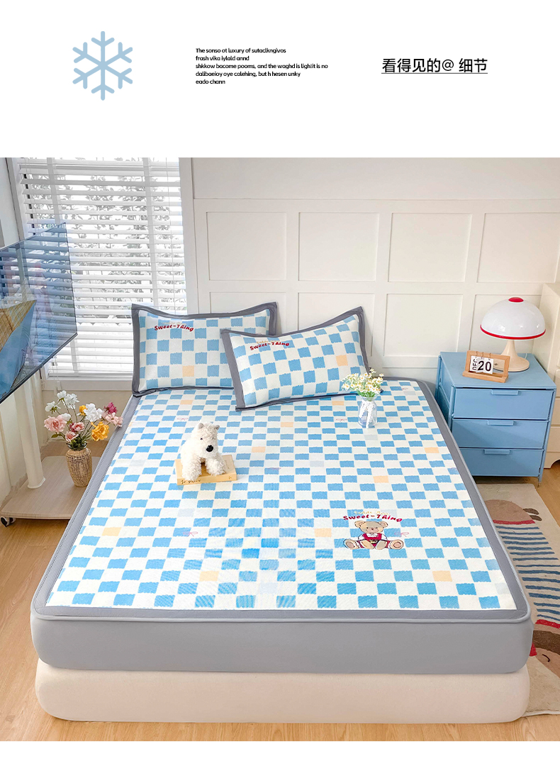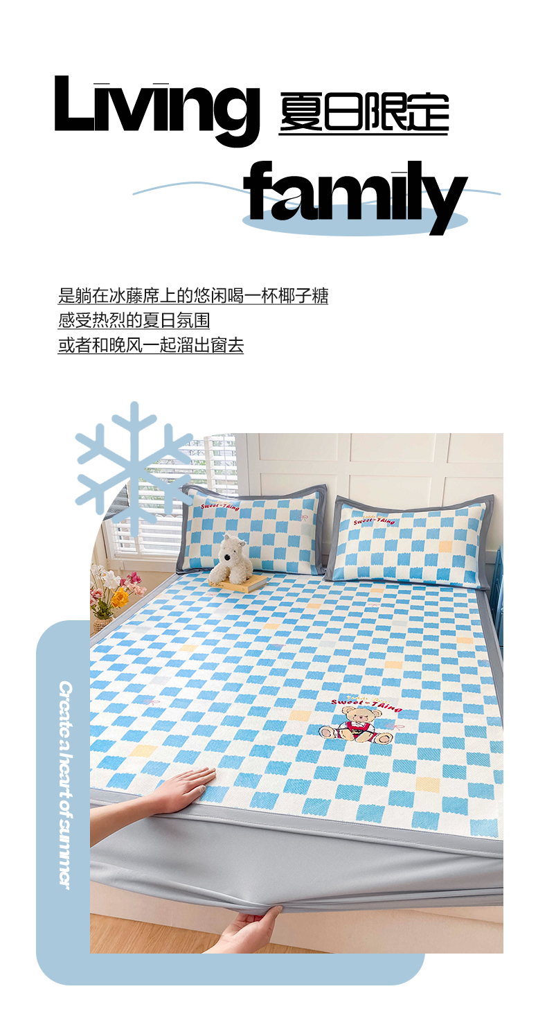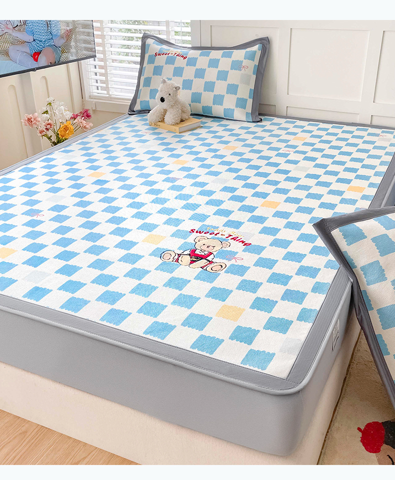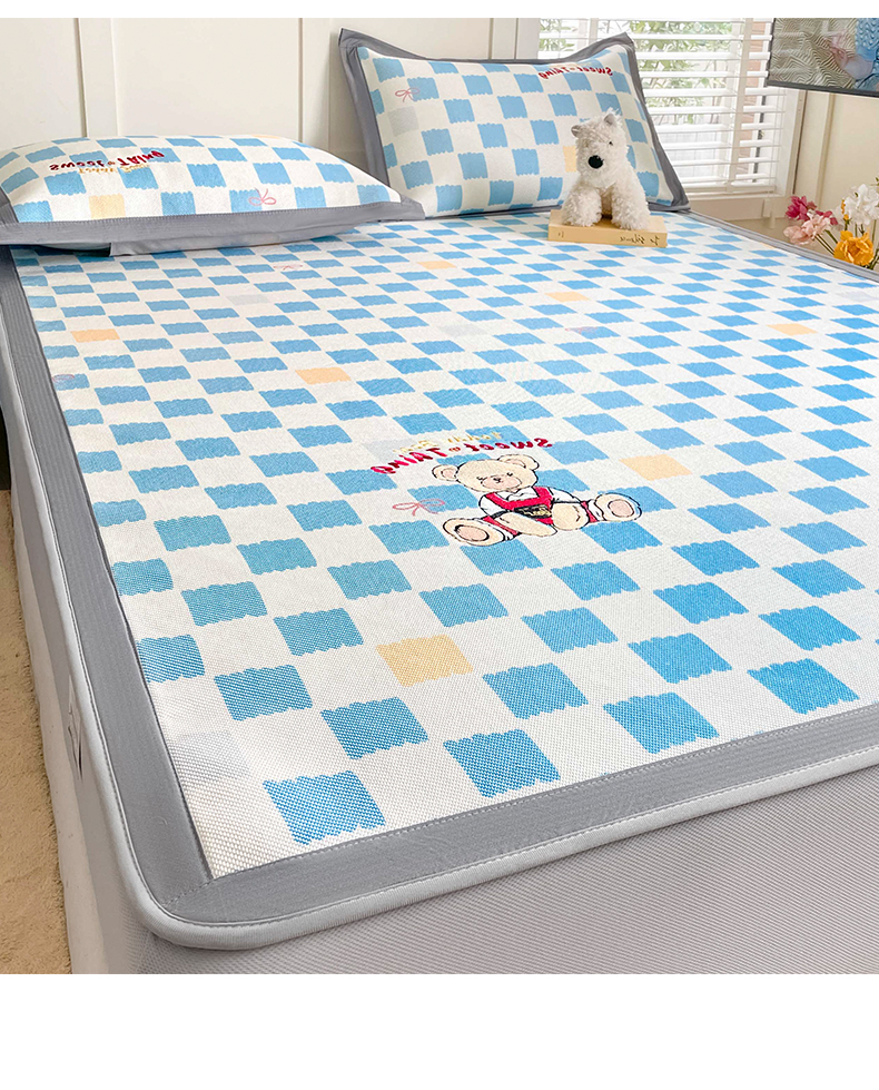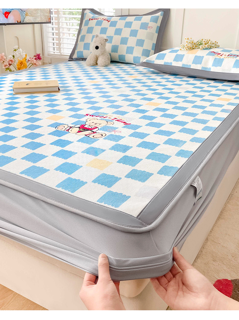 商品名称:雅居纺家纺 2026新款A类加厚三明治底绣花冰藤席床笠款凉席席子 时尚小熊