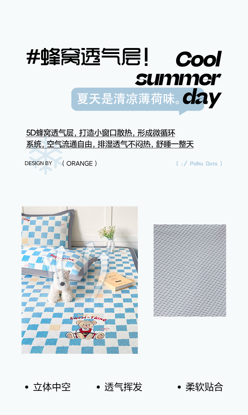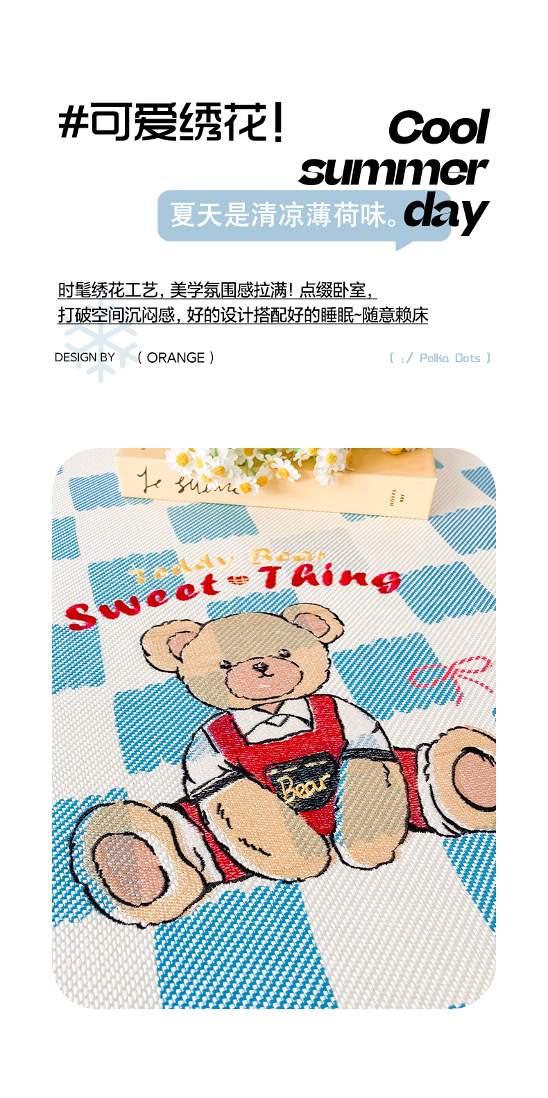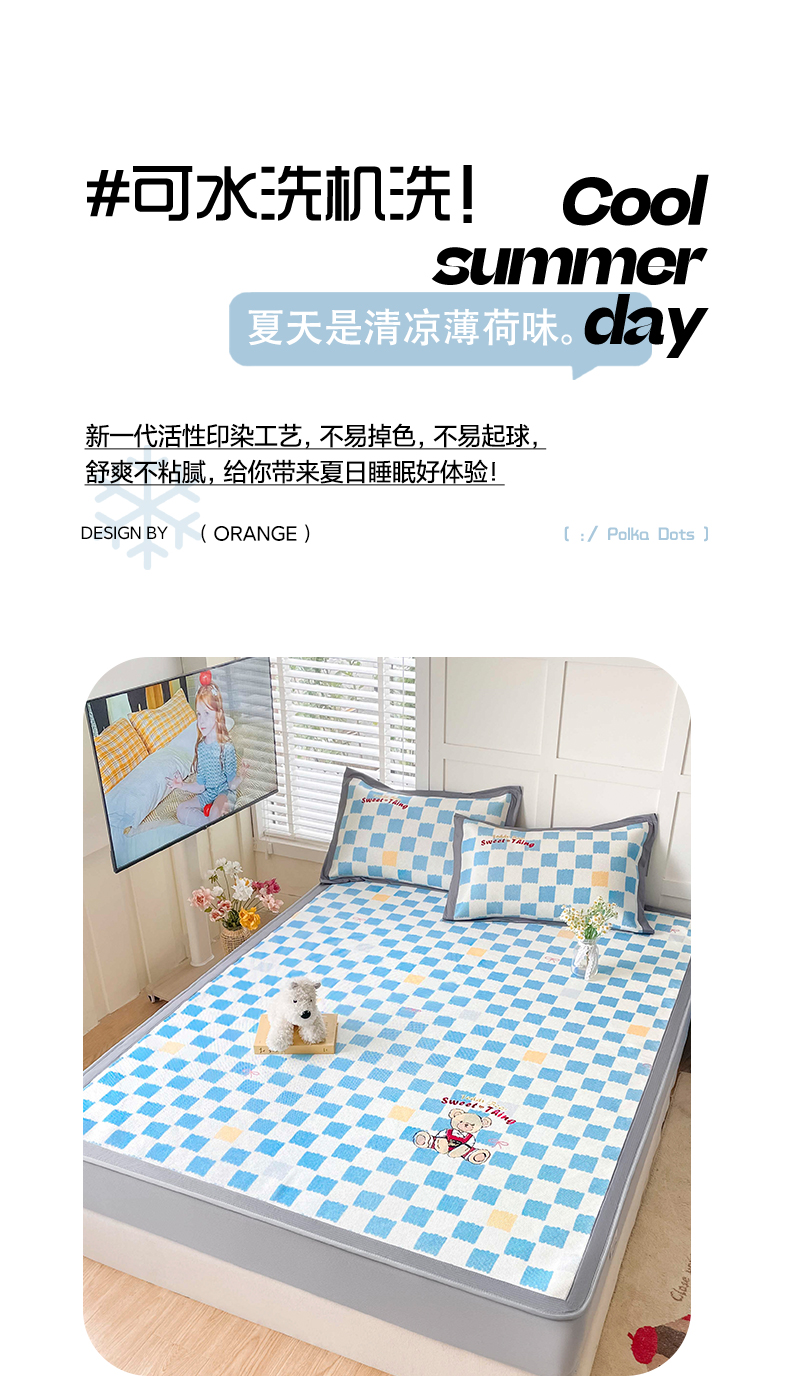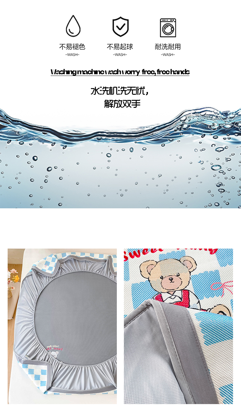 商品名称:雅居纺家纺 2026新款A类加厚三明治底绣花冰藤席床笠款凉席席子 时尚小熊