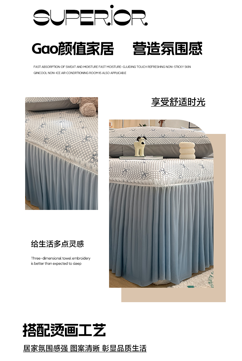180x200cm床裙款凉席+枕套一对