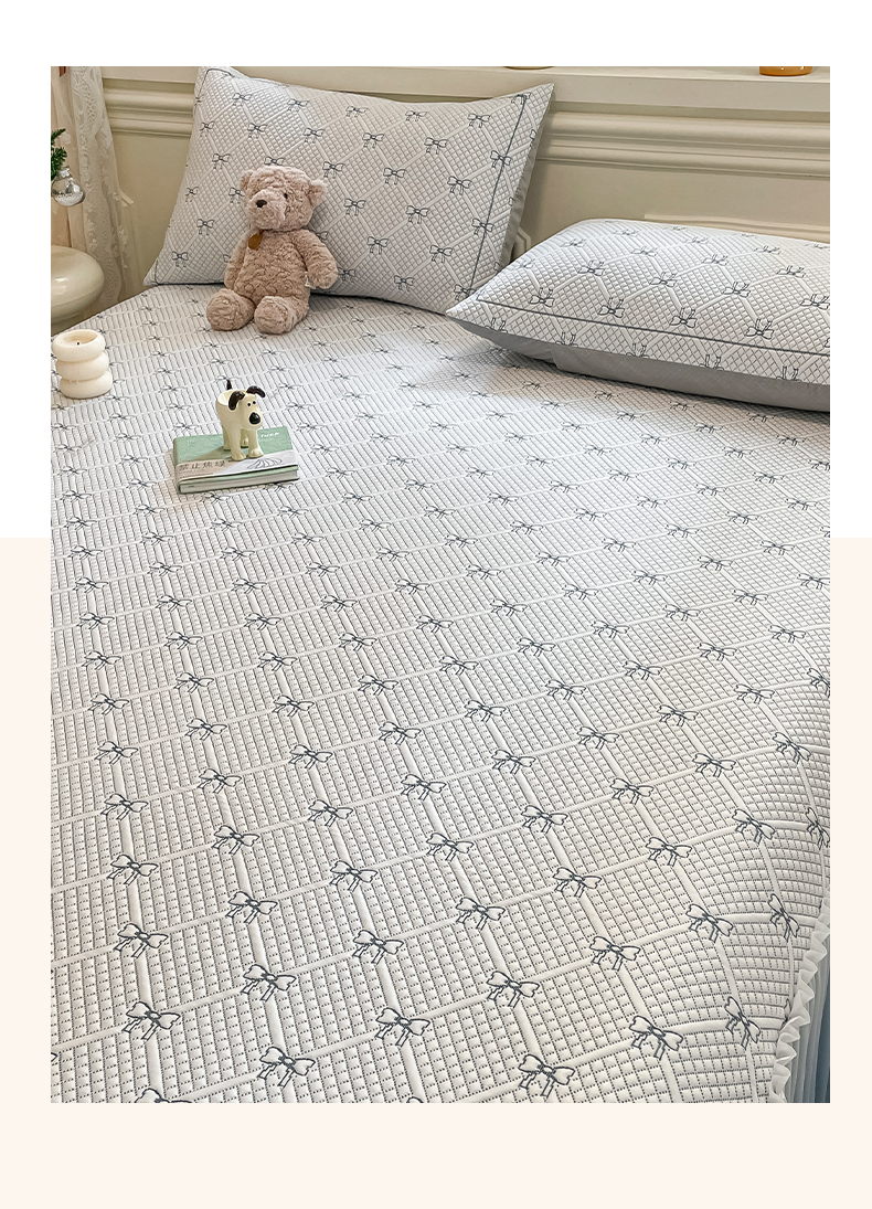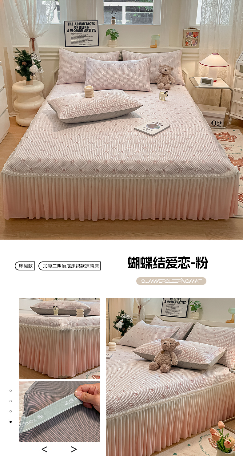 商品名称:雅居纺家纺 2026新款加厚三明治底床裙款凉感席凉席席子 蝴蝶结爱恋-蓝