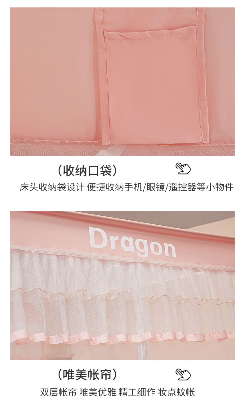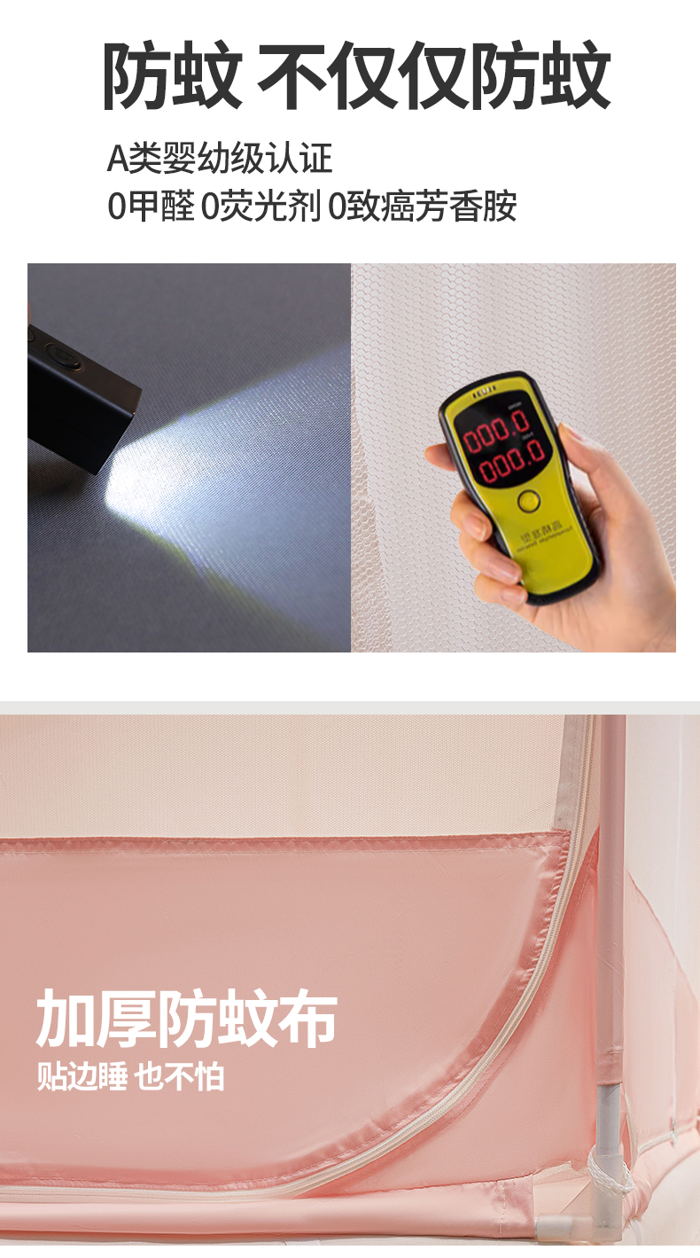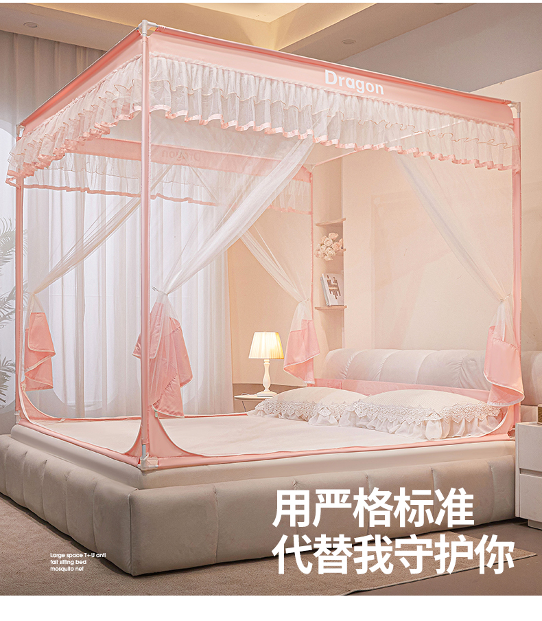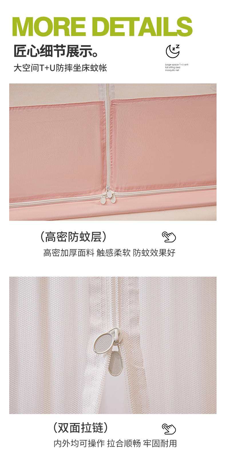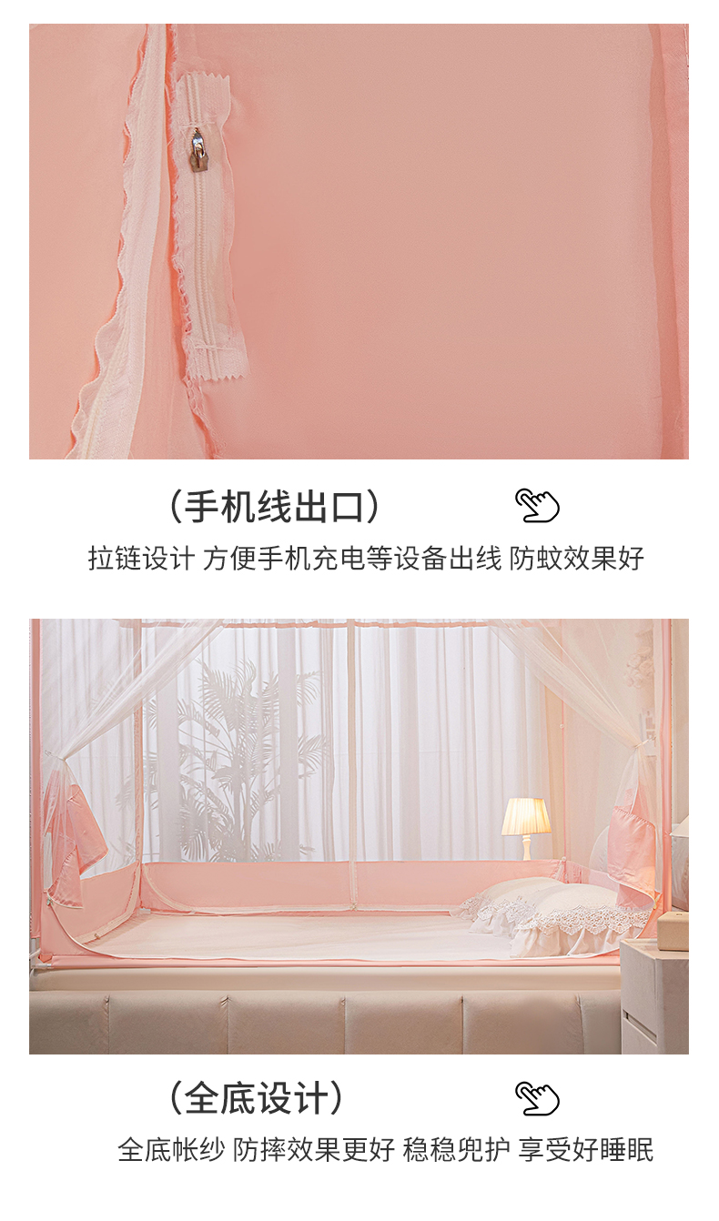 商品名称:梵希良品家纺 2026新款全底家用卧室坐床加密加厚支架全包围加粗大空间T+U防摔坐床蚊帐-漫语 漫语 柔粉