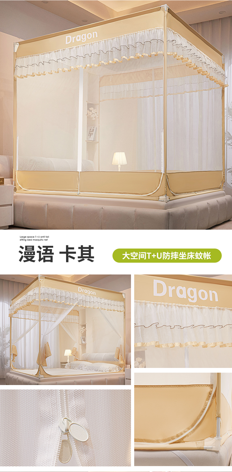 (总)梵希良品家纺 2026新款全底家用卧室坐床加密加厚支架全包围加粗大空间T+U防摔坐床蚊帐-漫语,漫语 果绿,漫语 简灰,漫语 卡其,漫语 柔粉