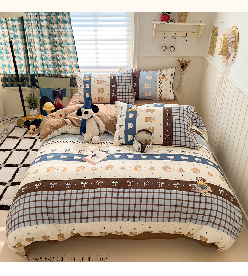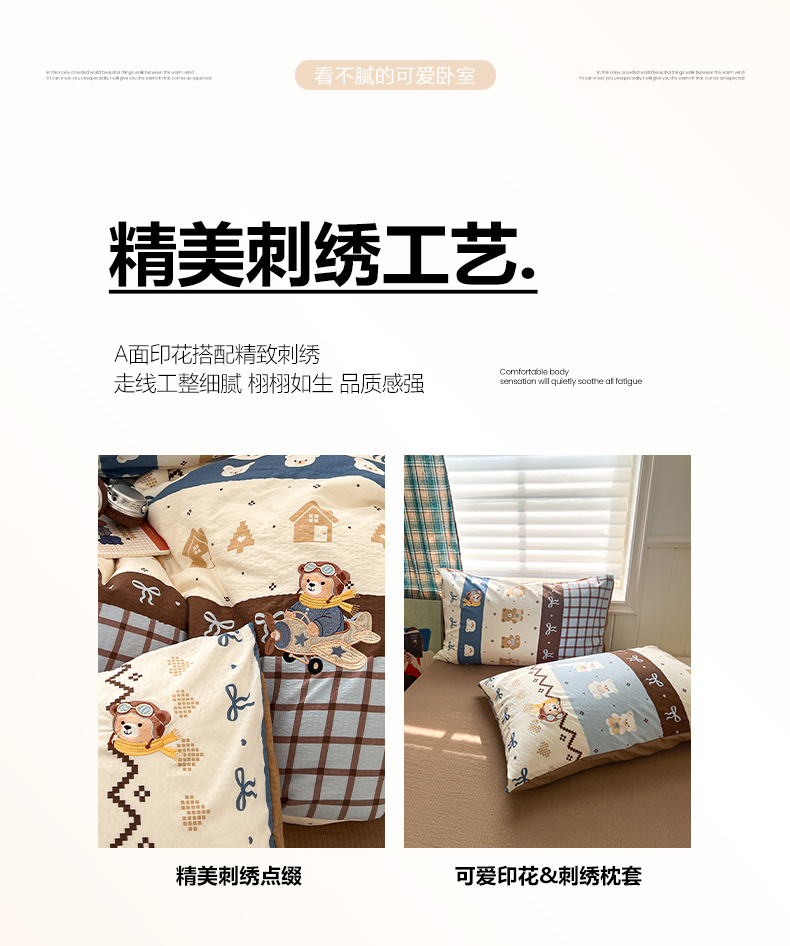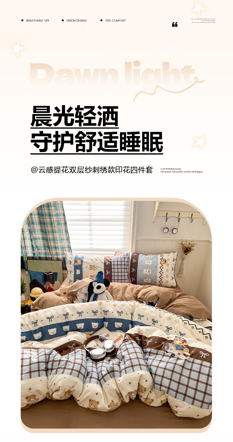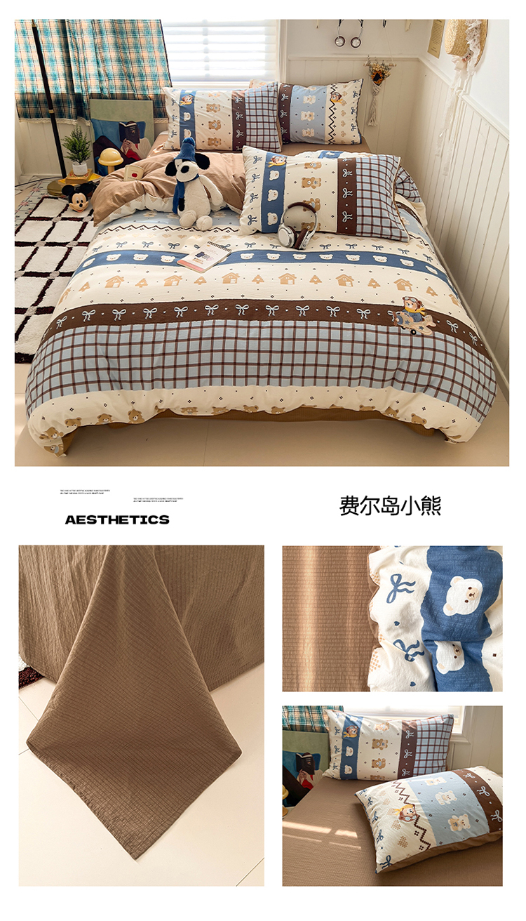 当前位置: 91家纺网 > 商品网购 > 床品套件 > 四件套 > 其它四件套 > 妖妖家纺 2026小清新软糯双层纱刺绣四件套 费尔岛小熊-刺绣