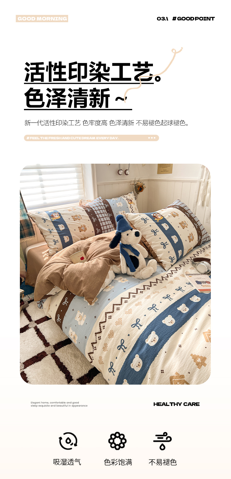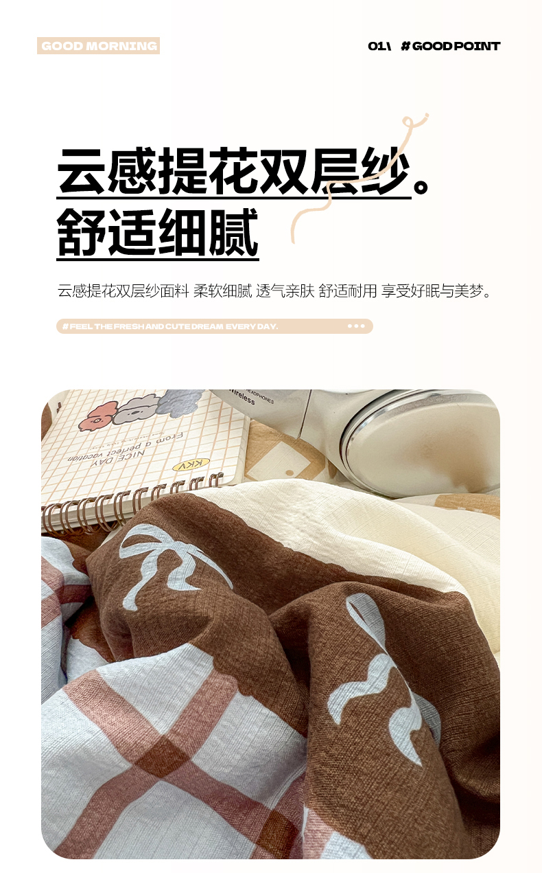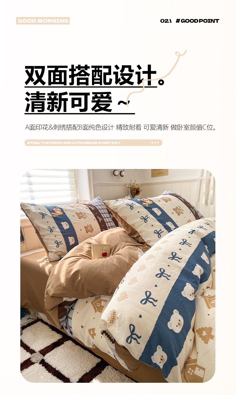 当前位置: 91家纺网 > 商品网购 > 床品套件 > 四件套 > 其它四件套 > 妖妖家纺 2026小清新软糯双层纱刺绣四件套 费尔岛小熊-刺绣