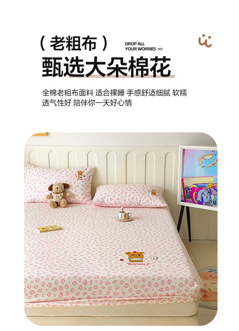 雅居纺家纺 2026新款全棉绣花A类老粗布床笠单件床笠单品凉席席子 老粗布-可爱熊