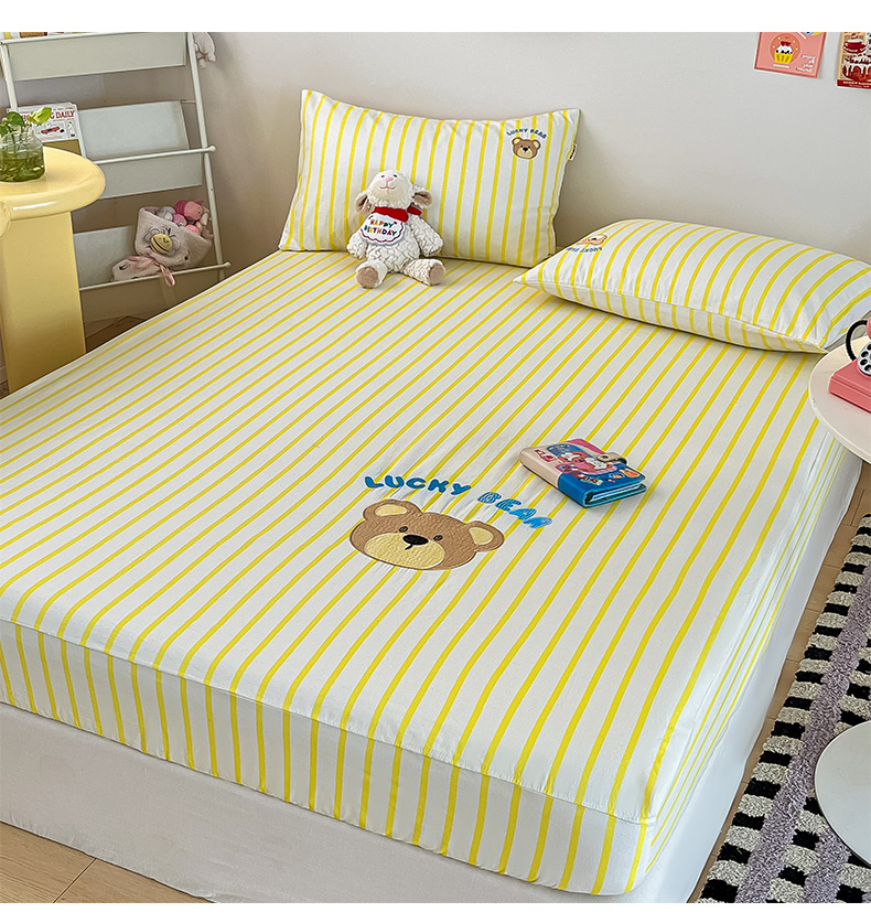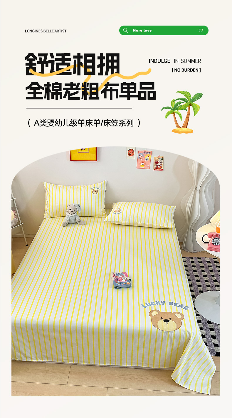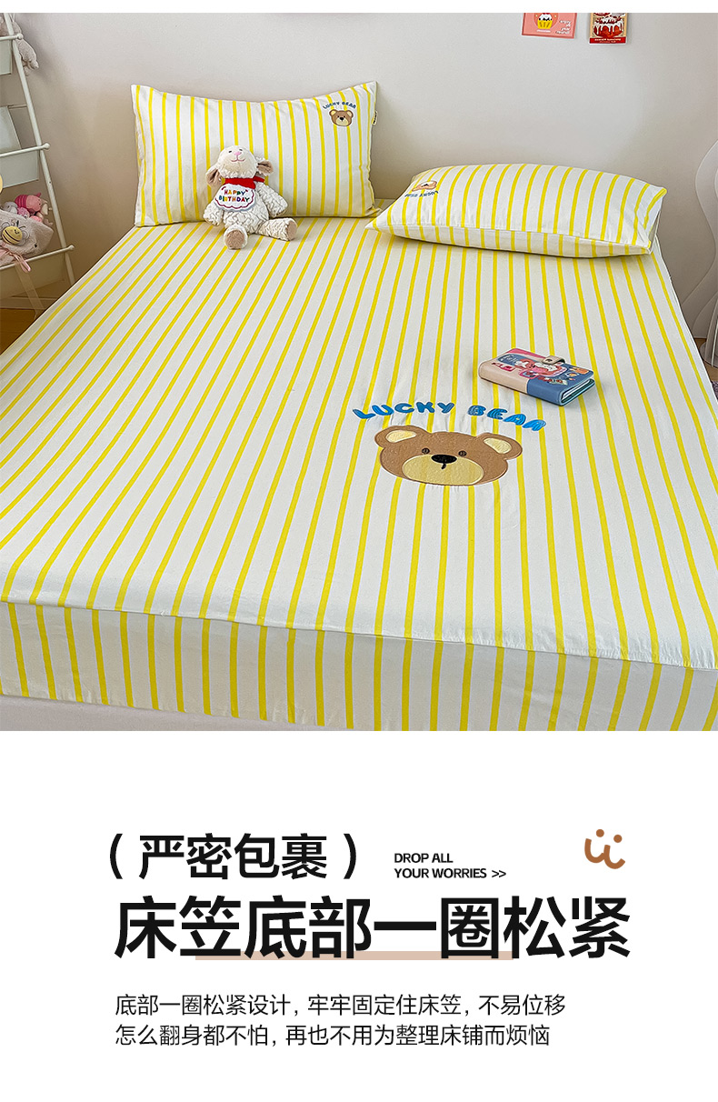 雅居纺家纺 2026新款全棉绣花A类老粗布床笠单件床笠单品凉席席子 老粗布-幸运熊
