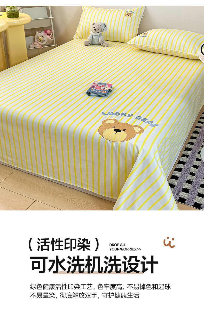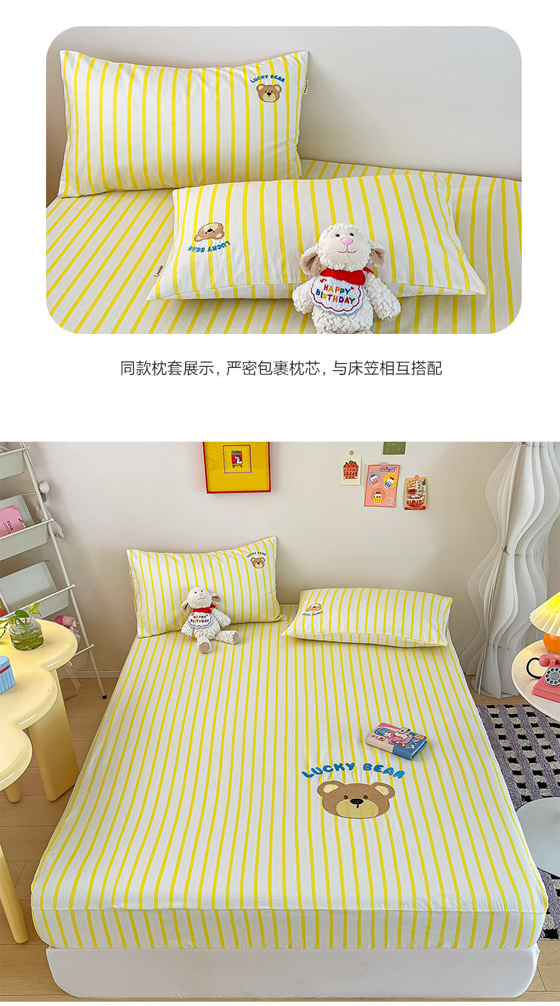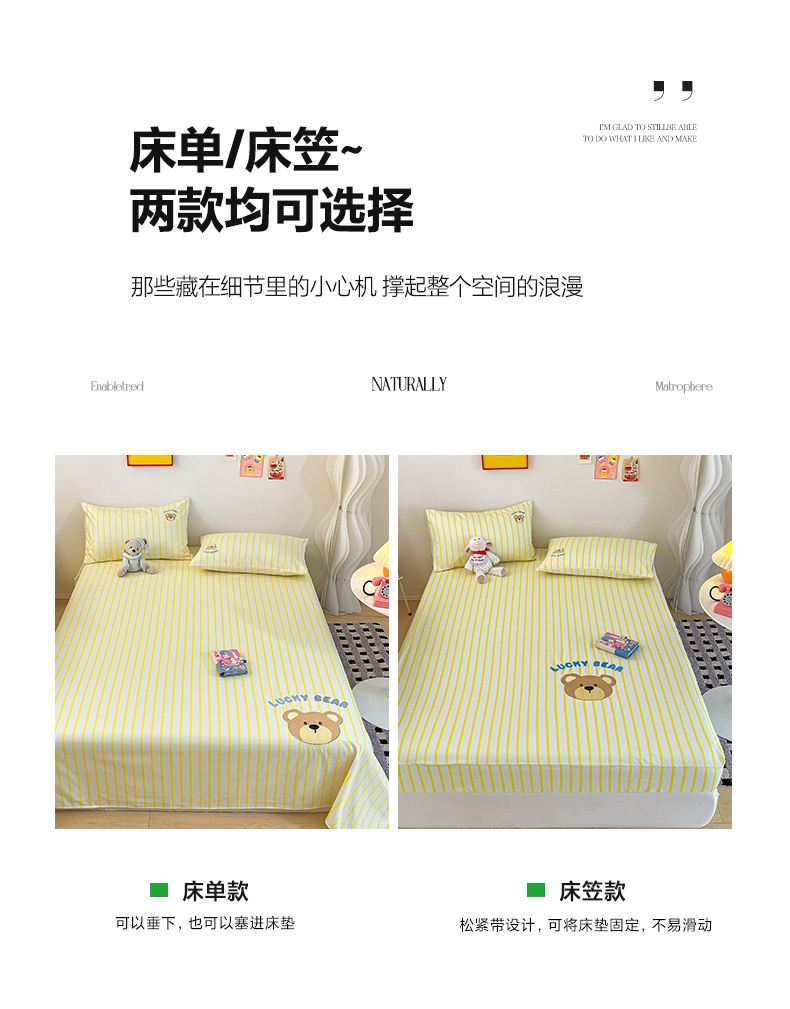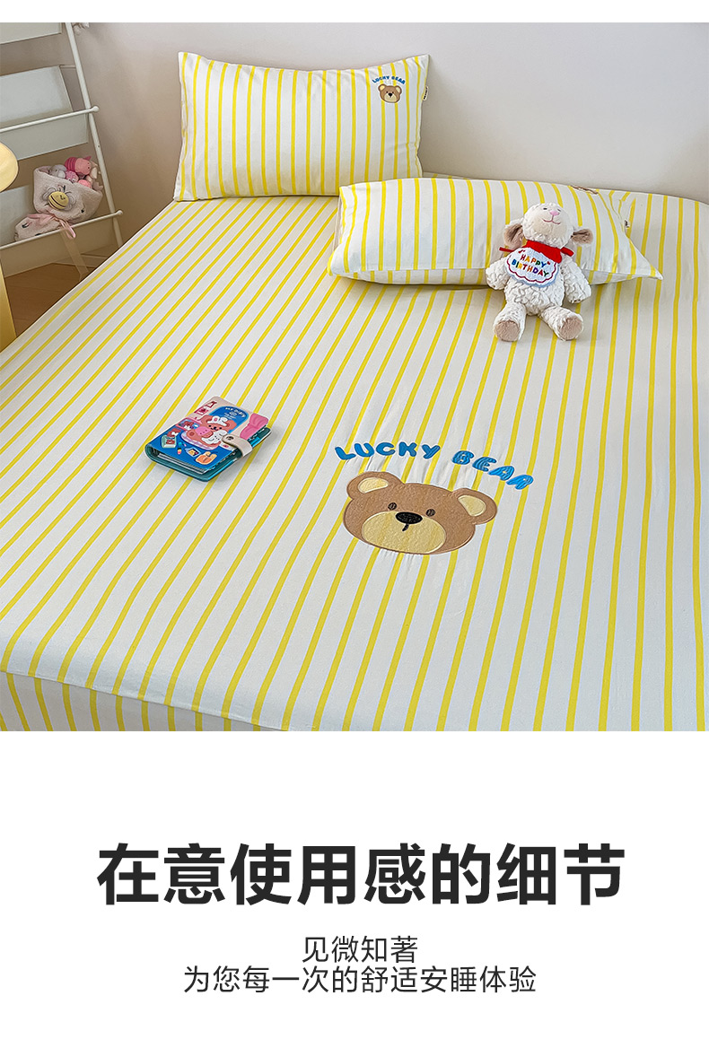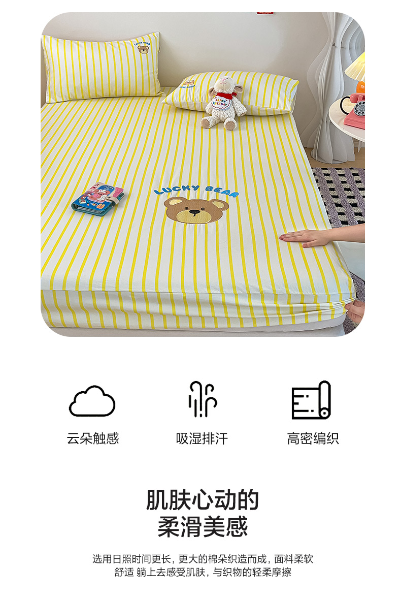 商品名称:雅居纺家纺 2026新款全棉绣花A类老粗布床笠单件床笠单品凉席席子 老粗布-幸运熊