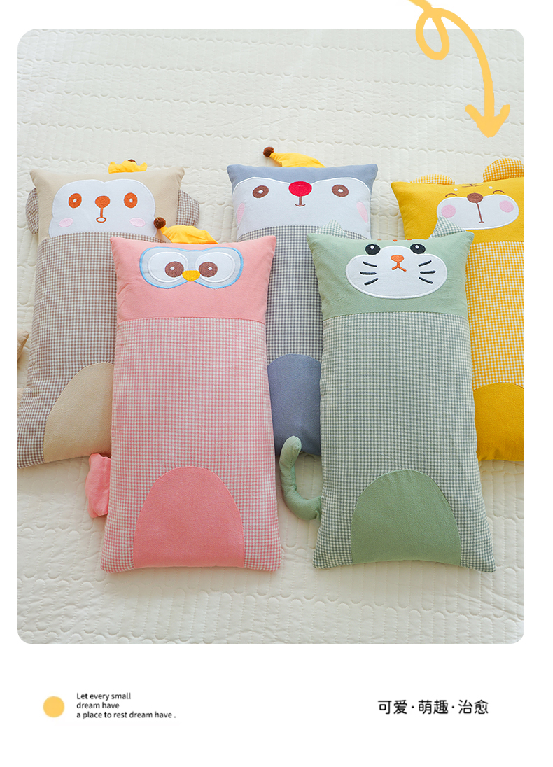 (总)蔻眠 2024新款可爱猫全棉儿童成人通用荞麦枕芯卡通枕头,粉色30x65cm,橘色30x65cm,咖色30x65cm,深蓝30x65cm,水绿30x65cm,天蓝30x65cm