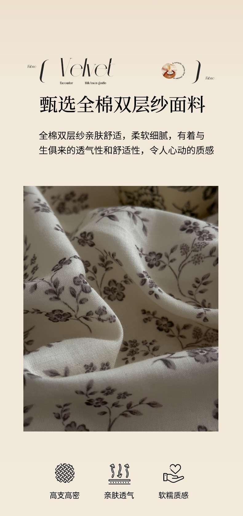 当前位置: 91家纺网 > 商品网购 > 床品套件 > 四件套 > 全棉普通四件套 > DoDo 兜兜 2026新款全棉纯棉复古双层纱四件套系列(可定做尺寸) 青竹漫-米