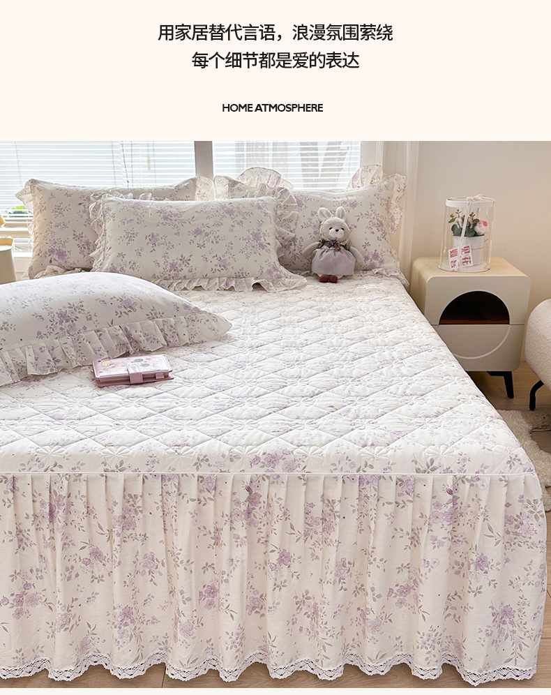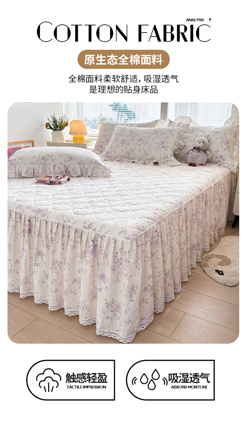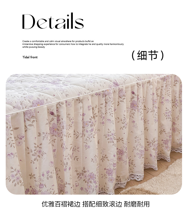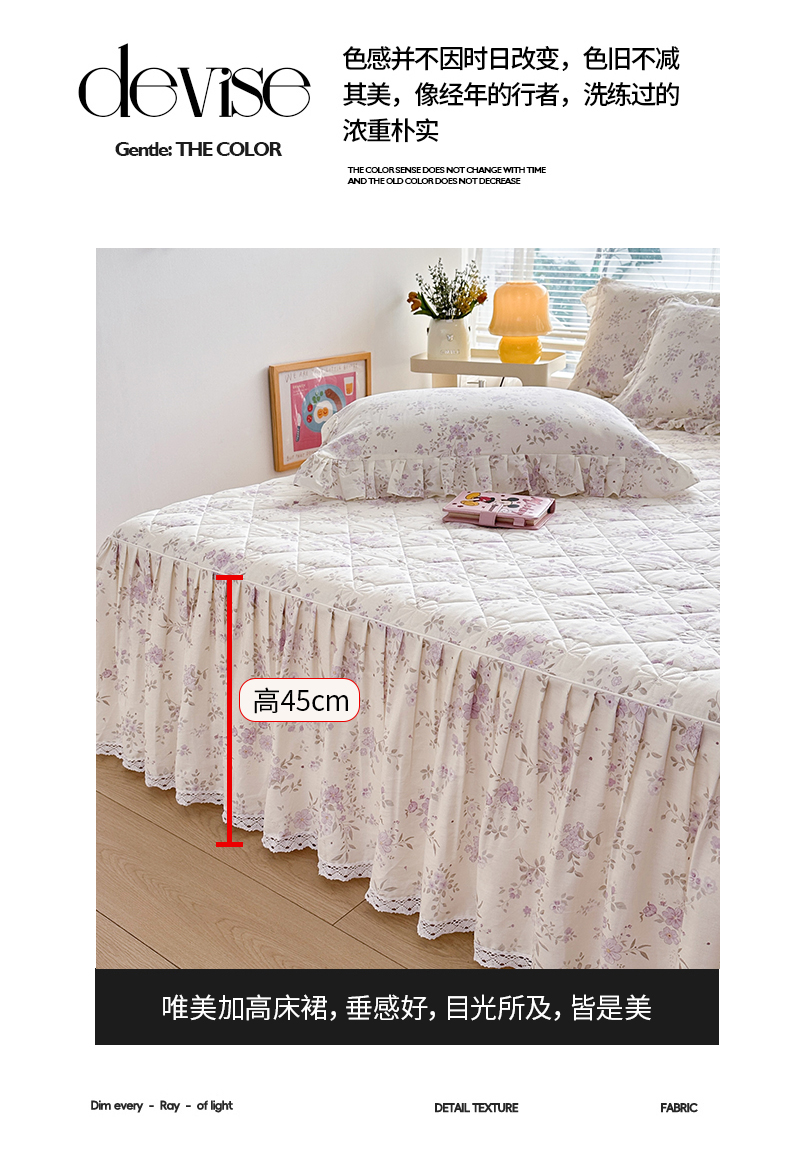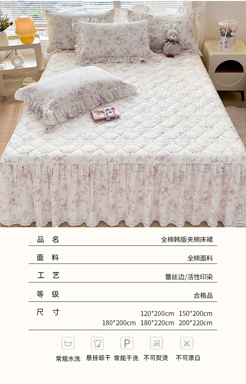 商品名称:忘忧草 2026春夏新款全棉纯棉夹棉印花床裙床裙单件 苏林-紫