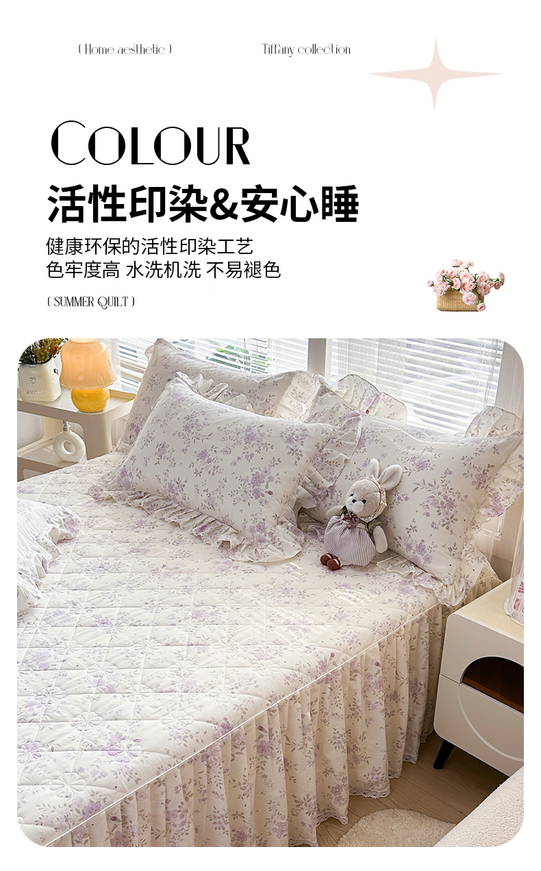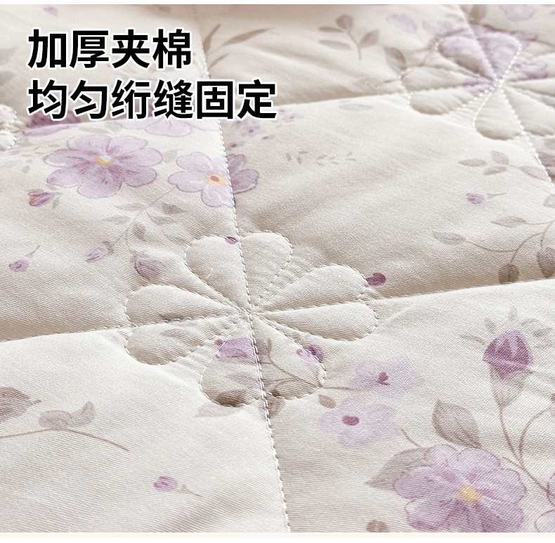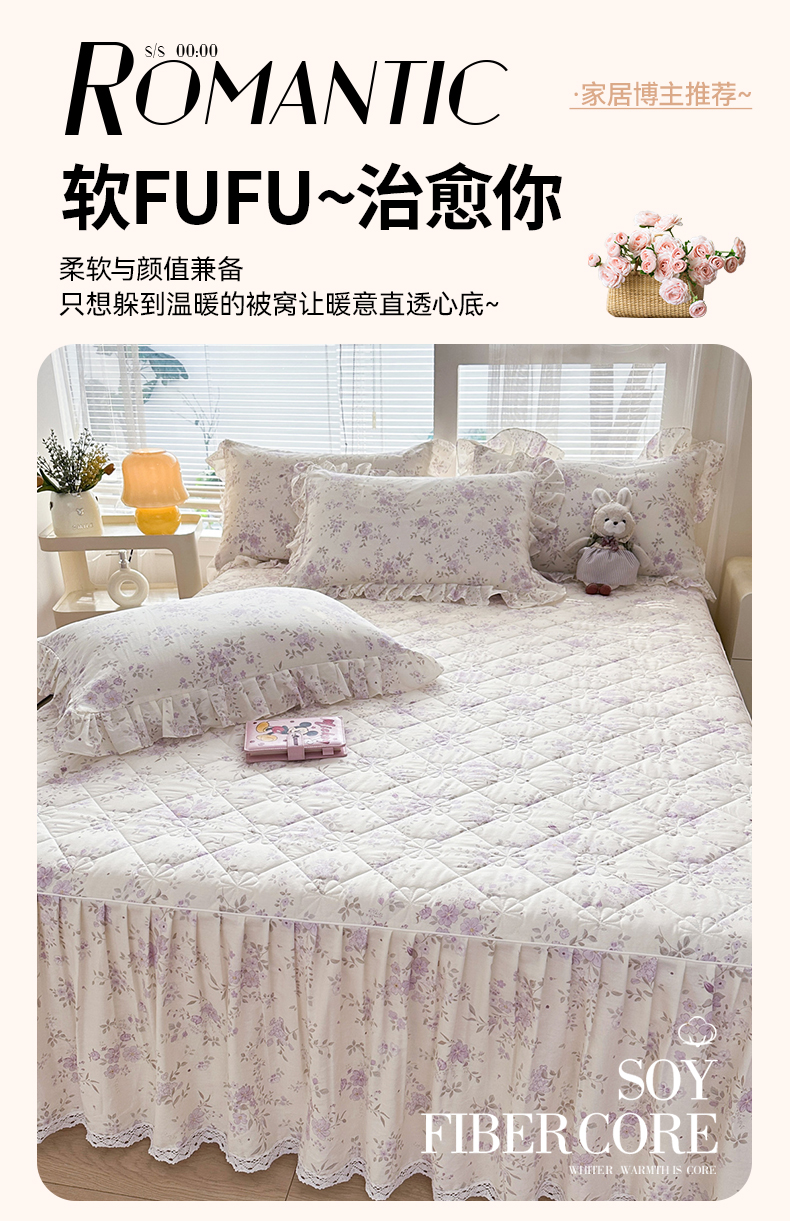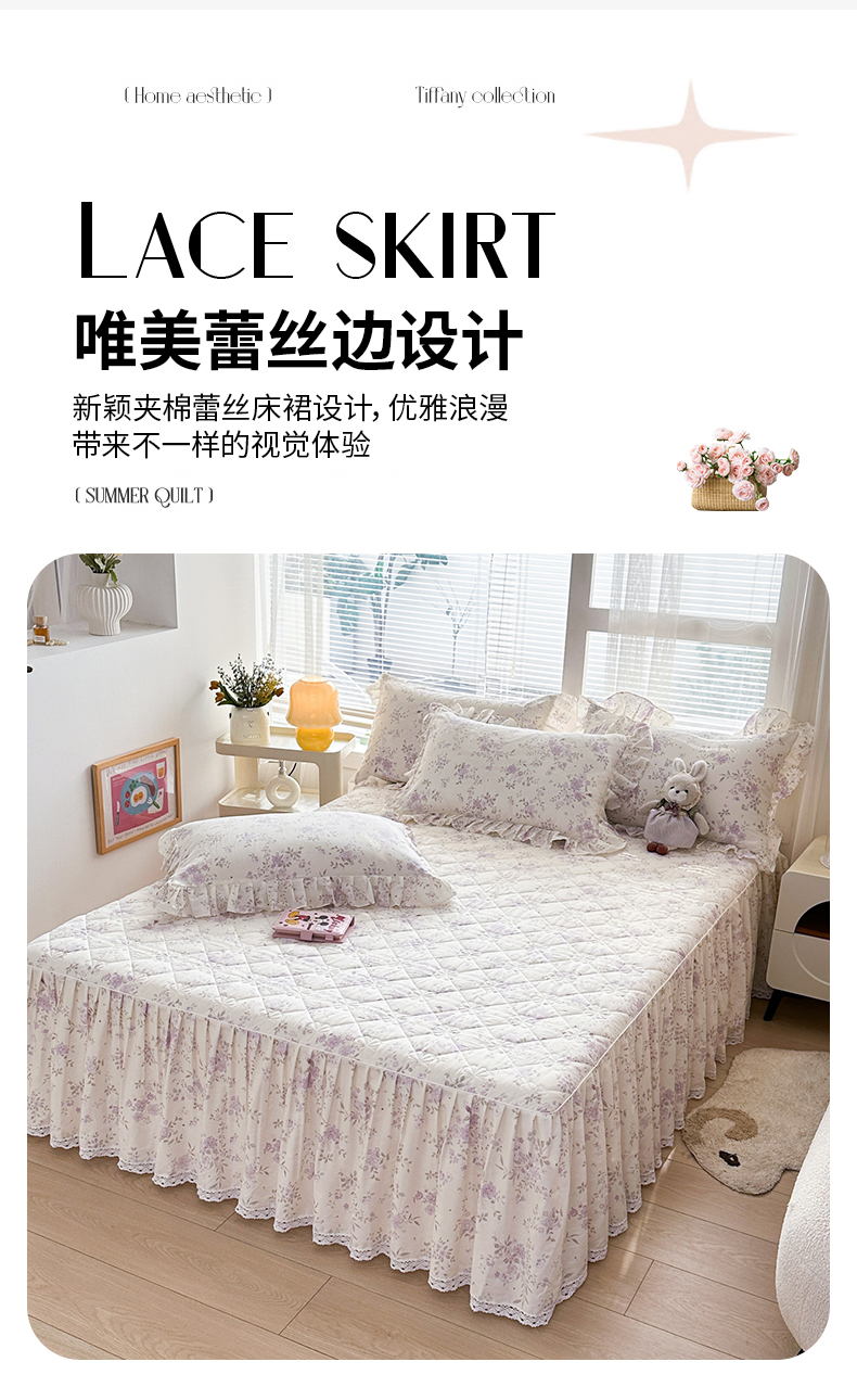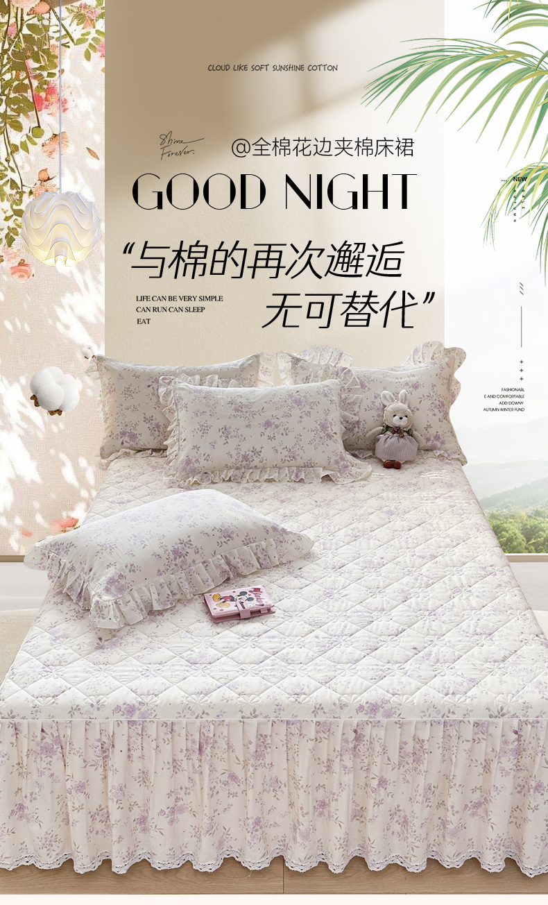 商品名称:忘忧草 2026春夏新款全棉纯棉夹棉印花床裙床裙单件 苏林-紫