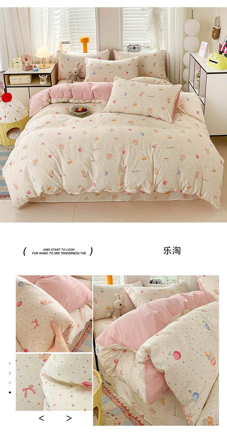 当前位置: 91家纺网 > 商品网购 > 床品套件 > 四件套 > 其它四件套 > 纽缦家纺 2026新款A类105g仿棉四件套古法水洗棉四件套 美丽小兔