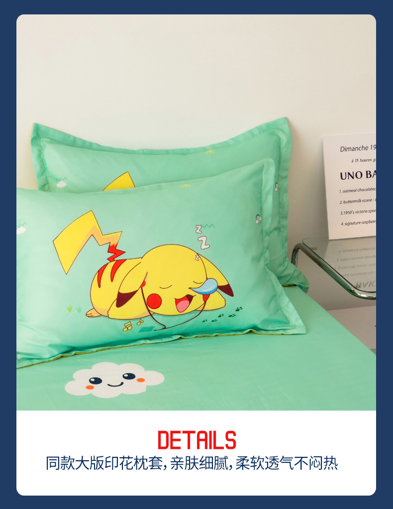 商品名称:一电 2026新款跨境电商卡通学生枕头套枕套48x74cm单只件一对装儿童男孩枕皮子-2.磨毛枕套 呼呼皮卡丘