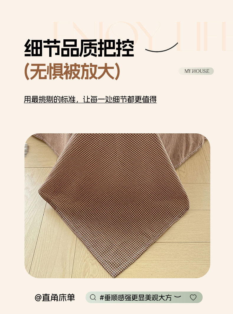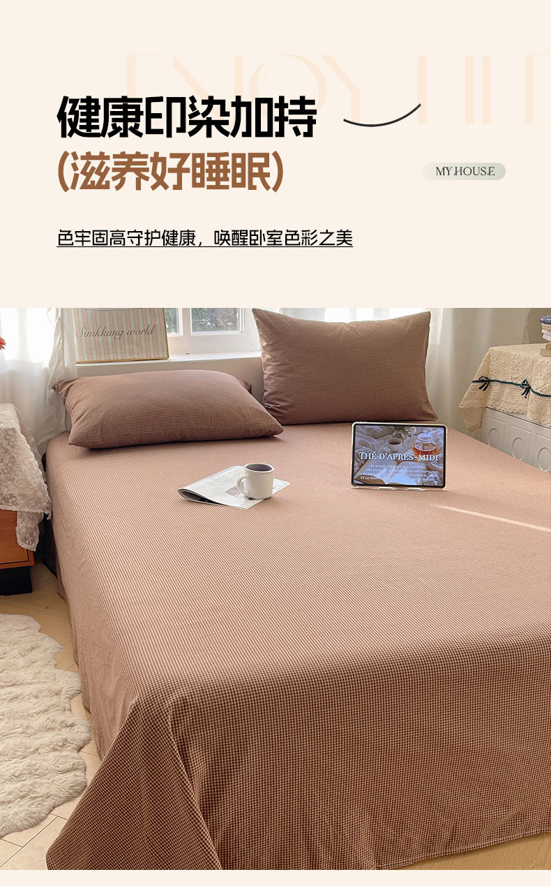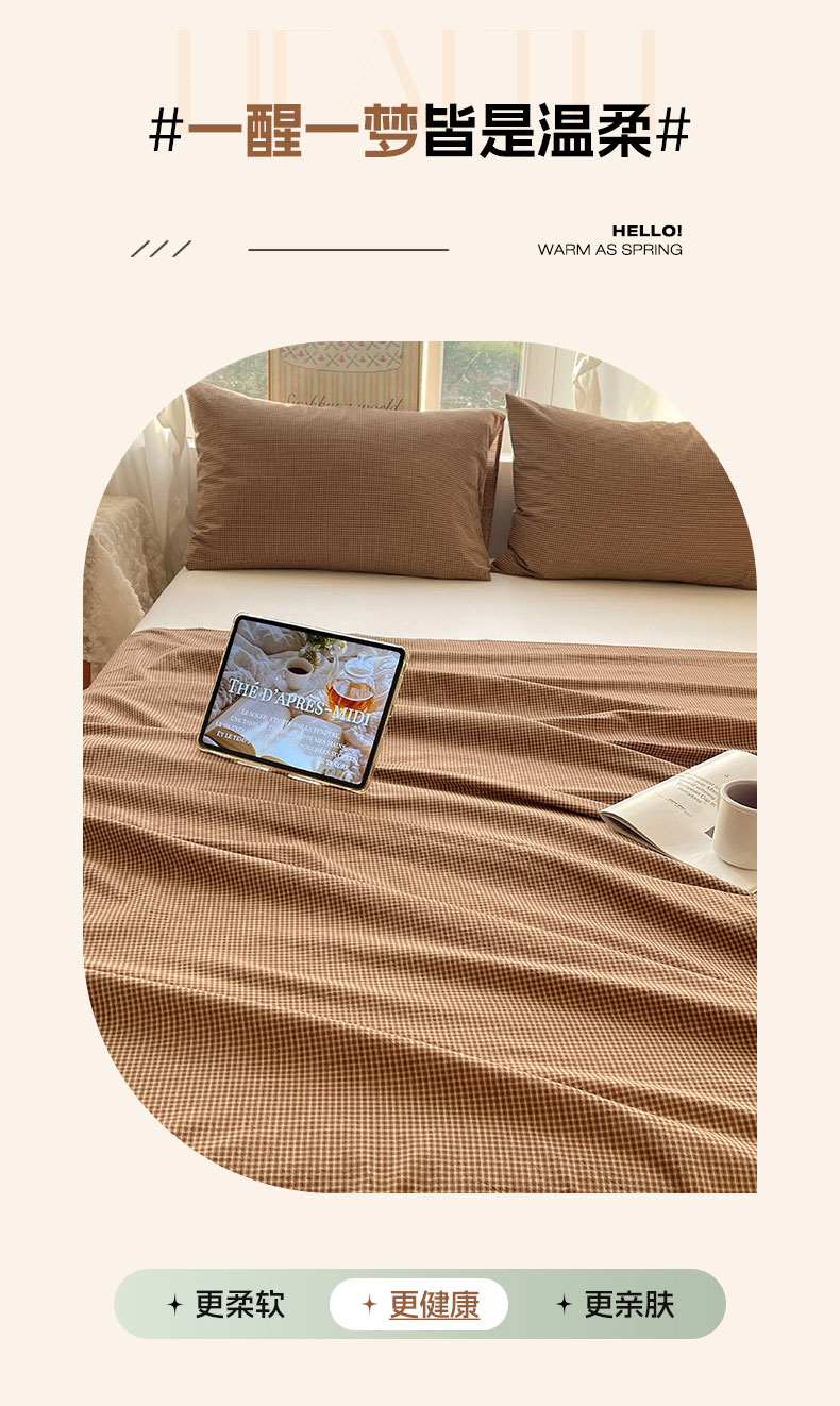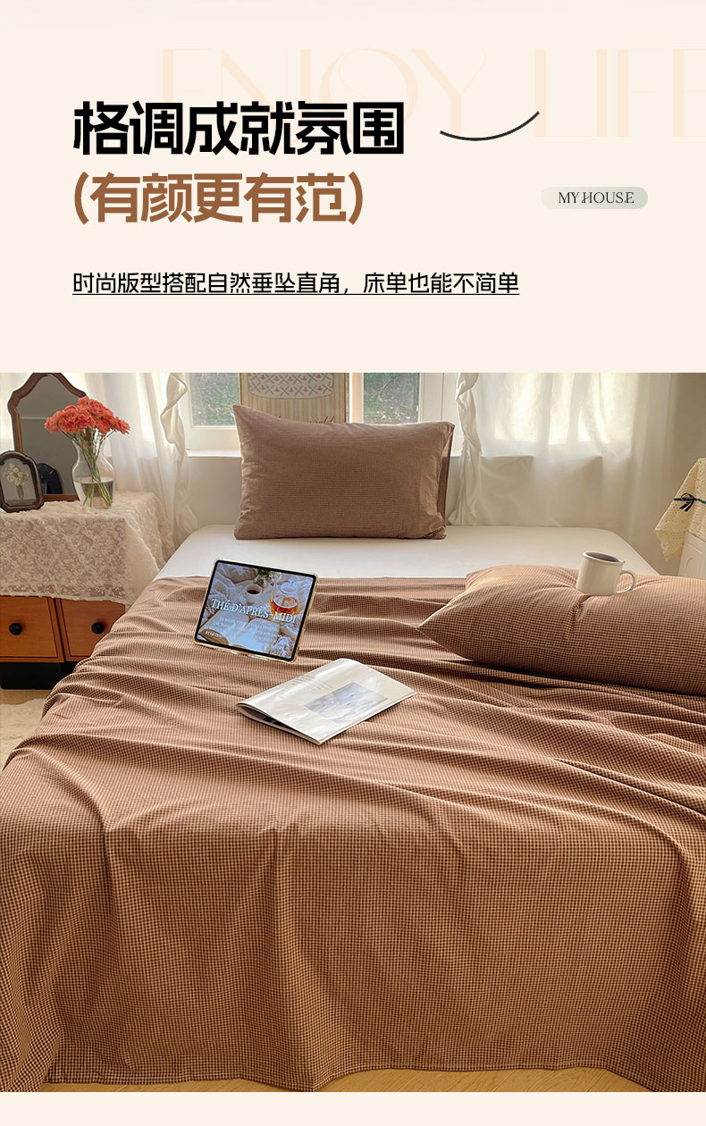 商品名称:六巷胡同 2026新款A类全棉纯棉水洗棉色织格子单品床单 床单单件 觅影-咖格