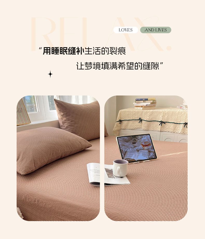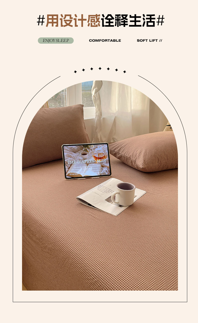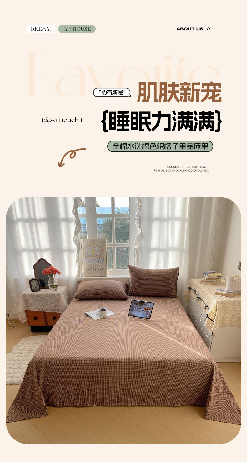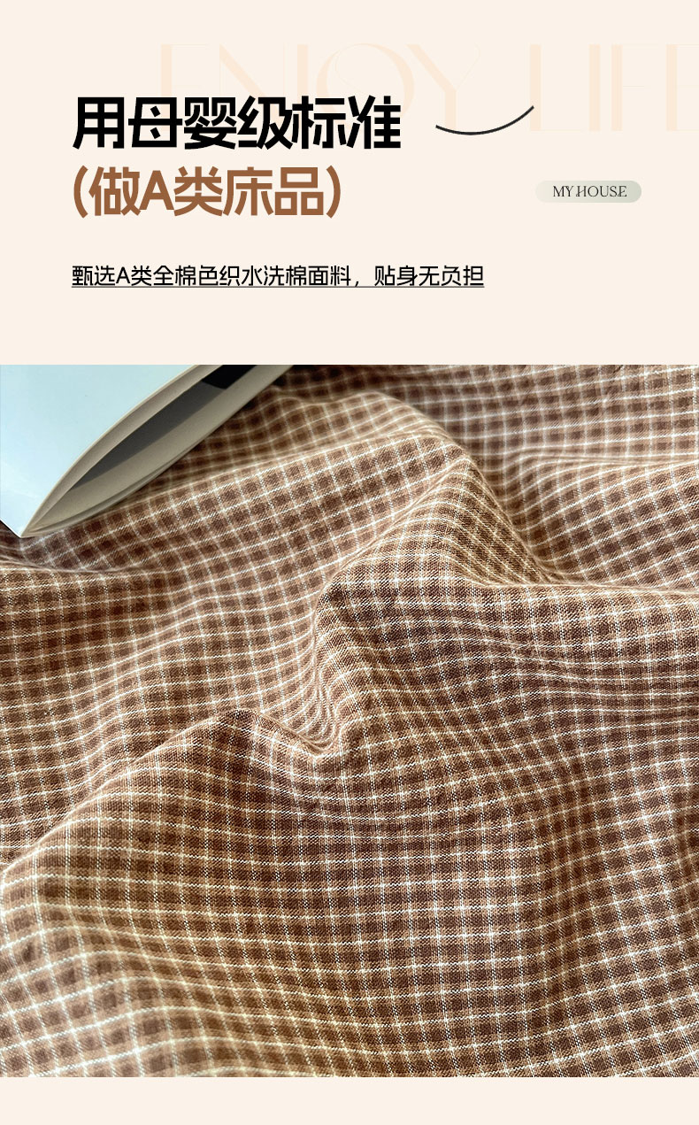 商品名称:六巷胡同 2026新款A类全棉纯棉水洗棉色织格子单品床单 床单单件 觅影-咖格