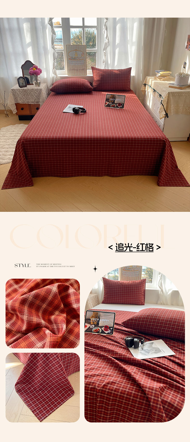 (总)六巷胡同 2026新款A类全棉纯棉水洗棉色织格子单品床单 床单单件,追光-蓝格,川奈-咖格,觅影-粉格,觅影-黑格,觅影-咖格,觅影-棕格,巷往-红格,巷往-灰格,巷往-橘格,巷往-蓝格,巷往-绿格,悦野-白格,悦野-灰格,知序-灰格,知序-橘格,知序-蓝格,知序-绿格,逐风-红格,逐风-灰格,逐风-咖格,追光-红格,追光-米格,组合图仅供展示不可下单