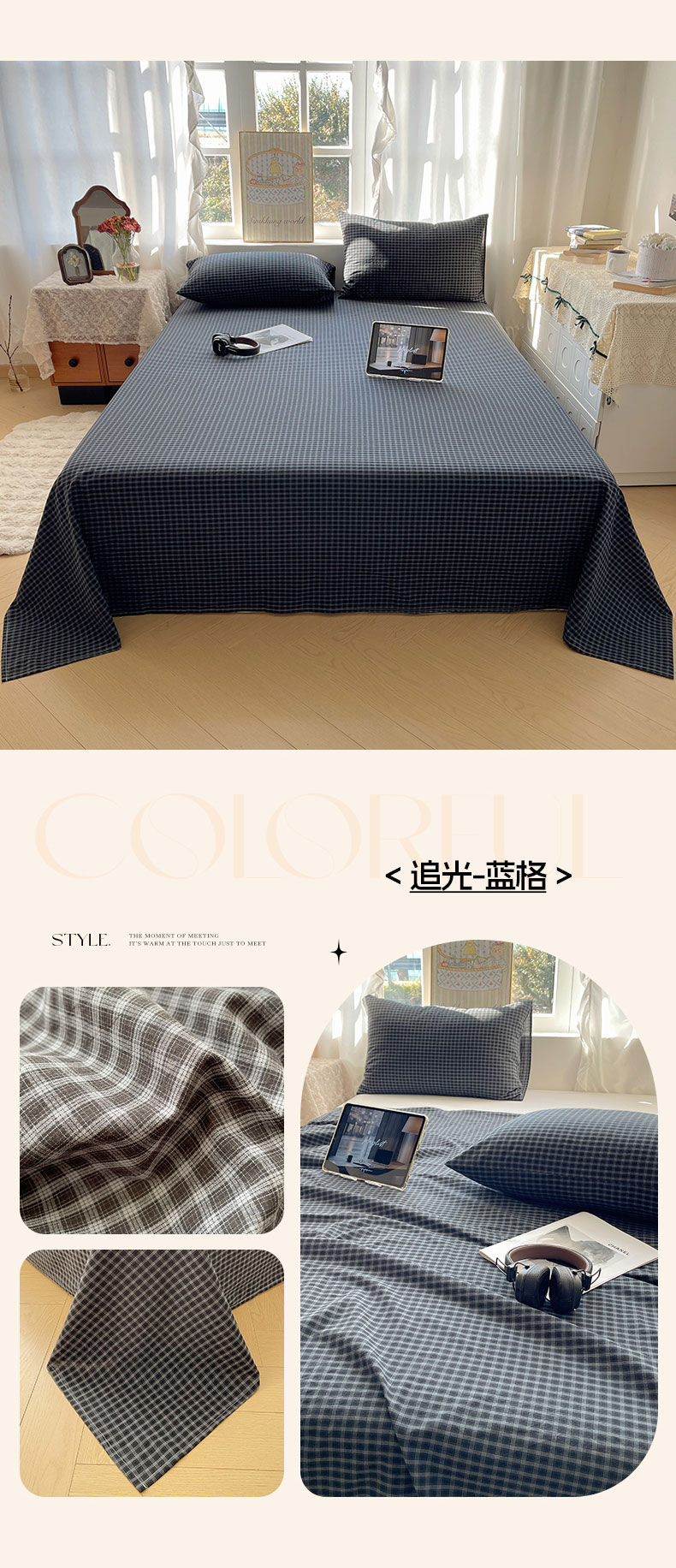 商品名称:六巷胡同 2026新款A类全棉纯棉水洗棉色织格子单品床单 床单单件 追光-米格