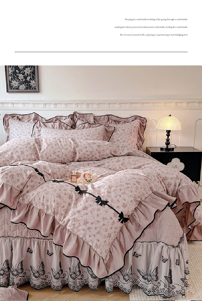 苏米娜家纺SUMINA 2025新款简约ins风A类全消光230g牛奶绒公主绒四件套床裙款被套-彩蝶系列,彩蝶-香芋紫 ,彩蝶-樱花粉,彩蝶-新芽绿