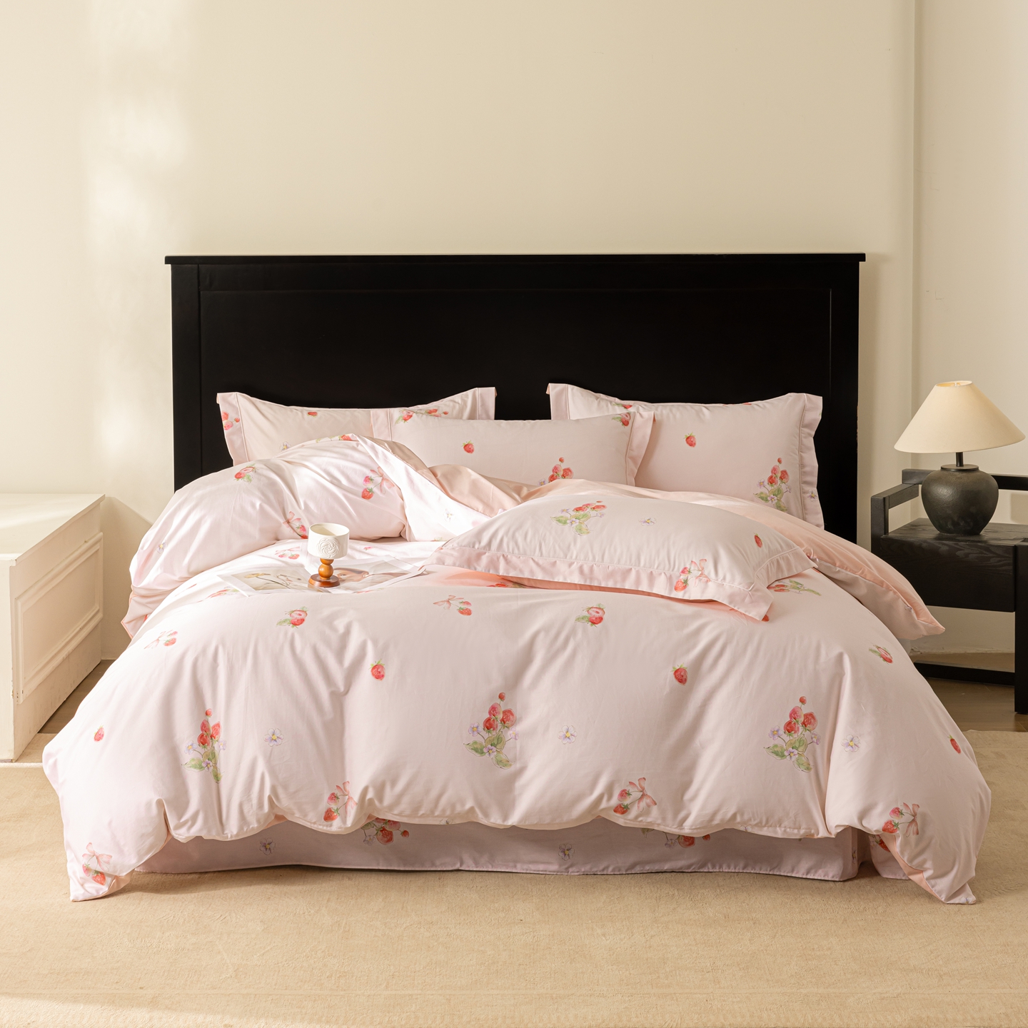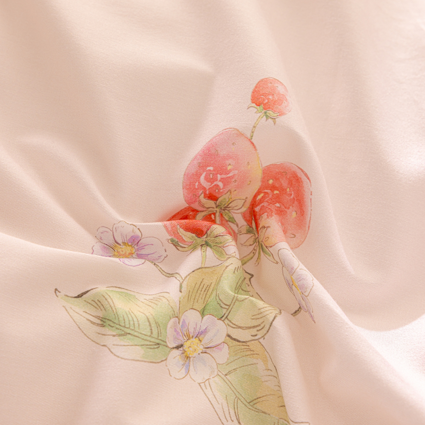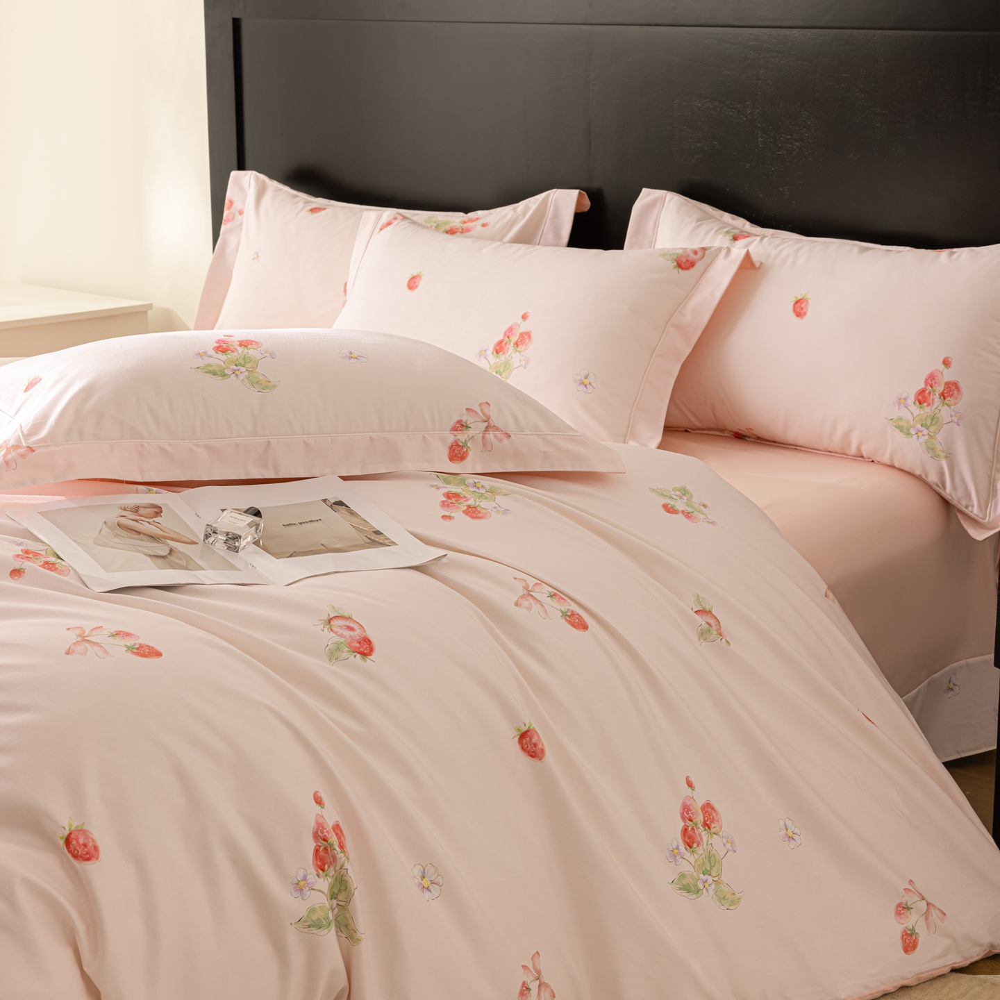 莱豫家纺 2026新款50s阿克苏长绒棉数码印花四件套 草莓甜心粉