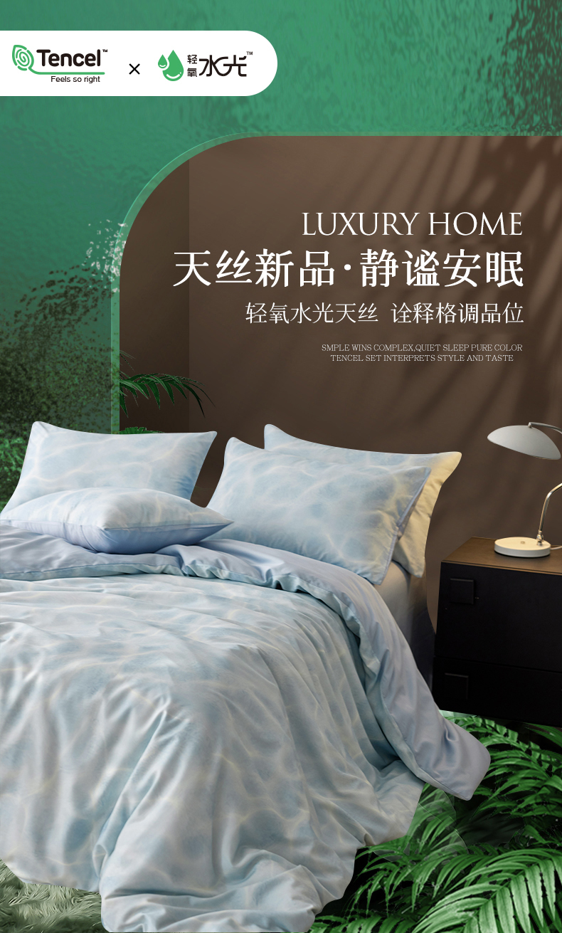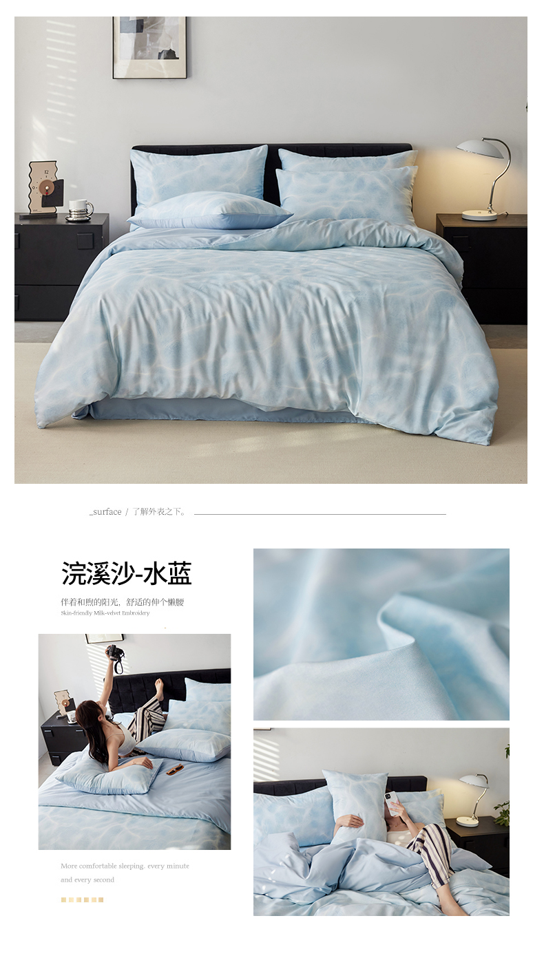 金奇达家纺 2026新款轻氧水光天丝棉四件套-赫莲伊(标准号全网控价(折后券后)不低于 268元) 浣溪沙-水蓝