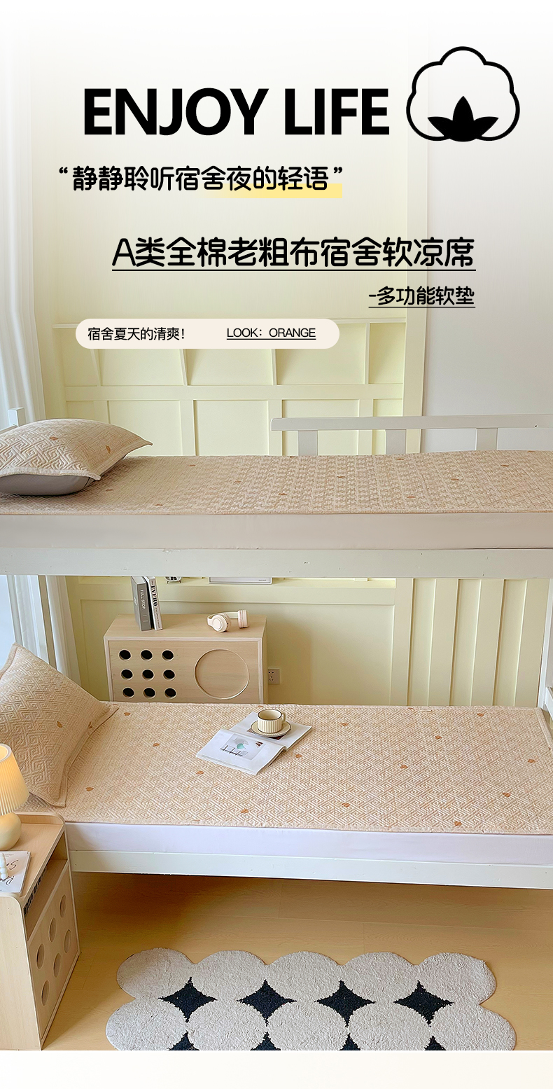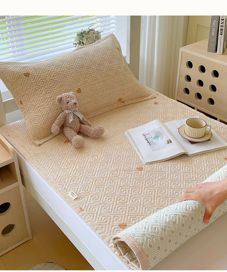 当前位置: 91家纺网 > 商品网购 > 床上用品 > 凉席 > 其他凉席 > 金鑫汇家纺 2026春夏新款学生床新花型老粗布床盖夹棉软凉席席子可以机洗 学生床-心之恋