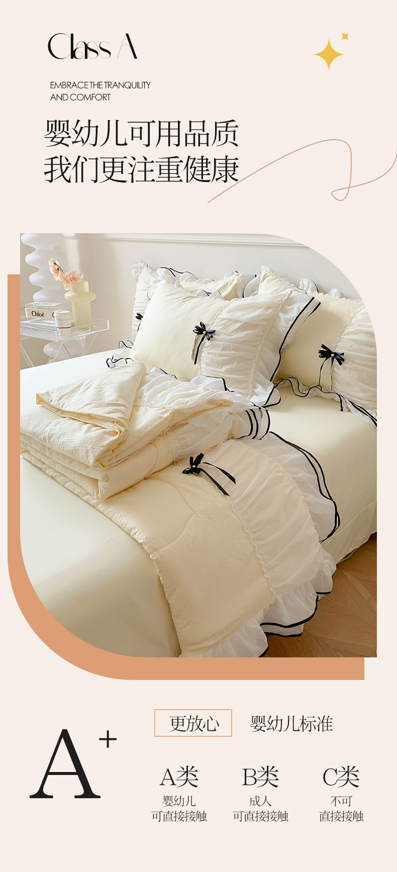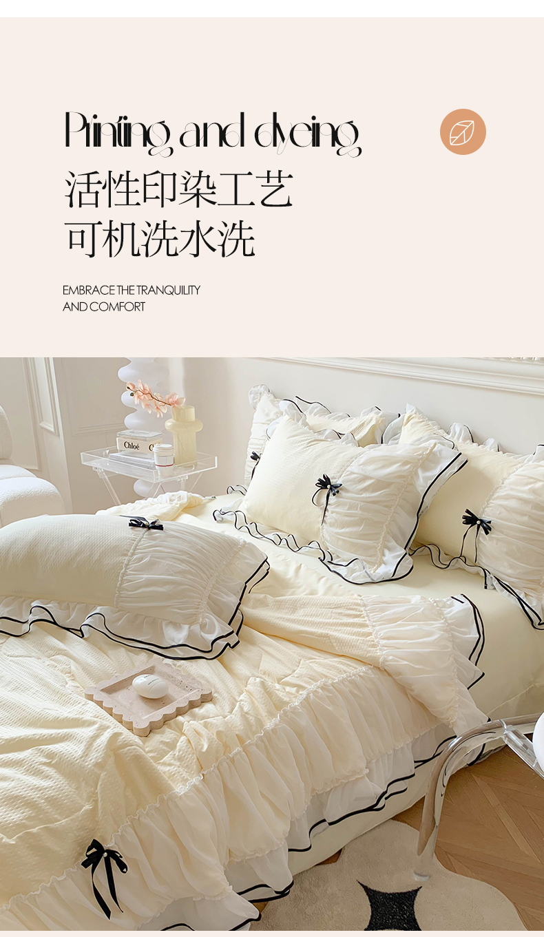 (总)吾欢心 2025新款小香风可可小姐系列花边四件套,可可奶茶绿,可可奶昔粉,可可柠檬黄,可可温柔紫,可可樱桃粉