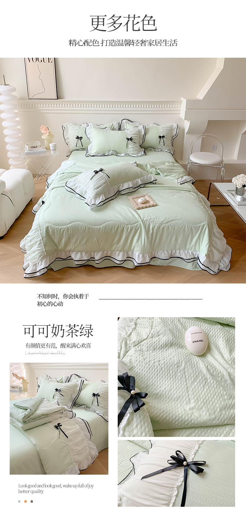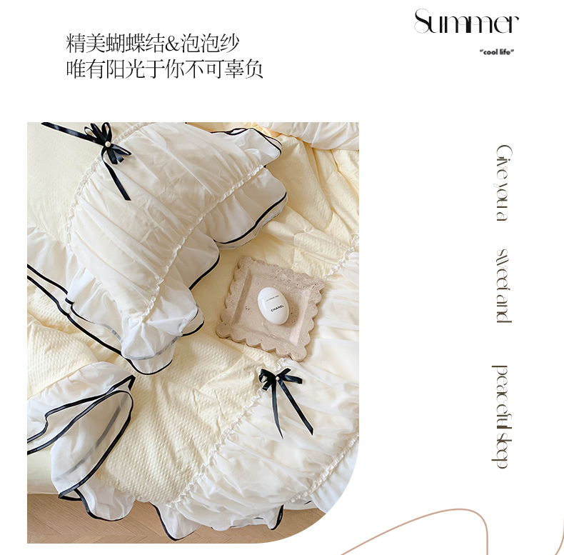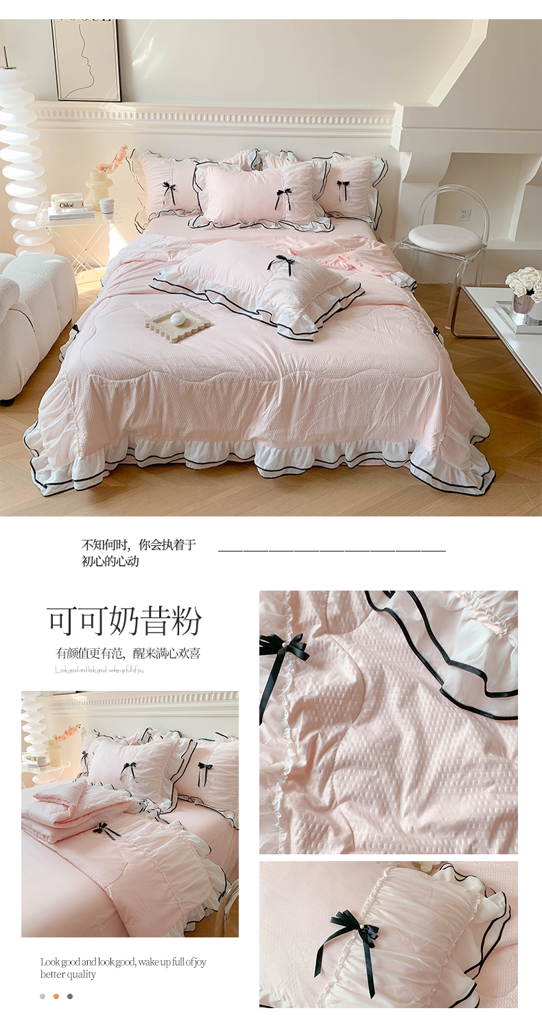 (总)吾欢心 2026新款小香风可可系列双层花边床盖款夏被四件套被子被芯,可可奶茶绿,可可奶昔粉,可可柠檬黄,可可温柔紫,可可樱桃粉