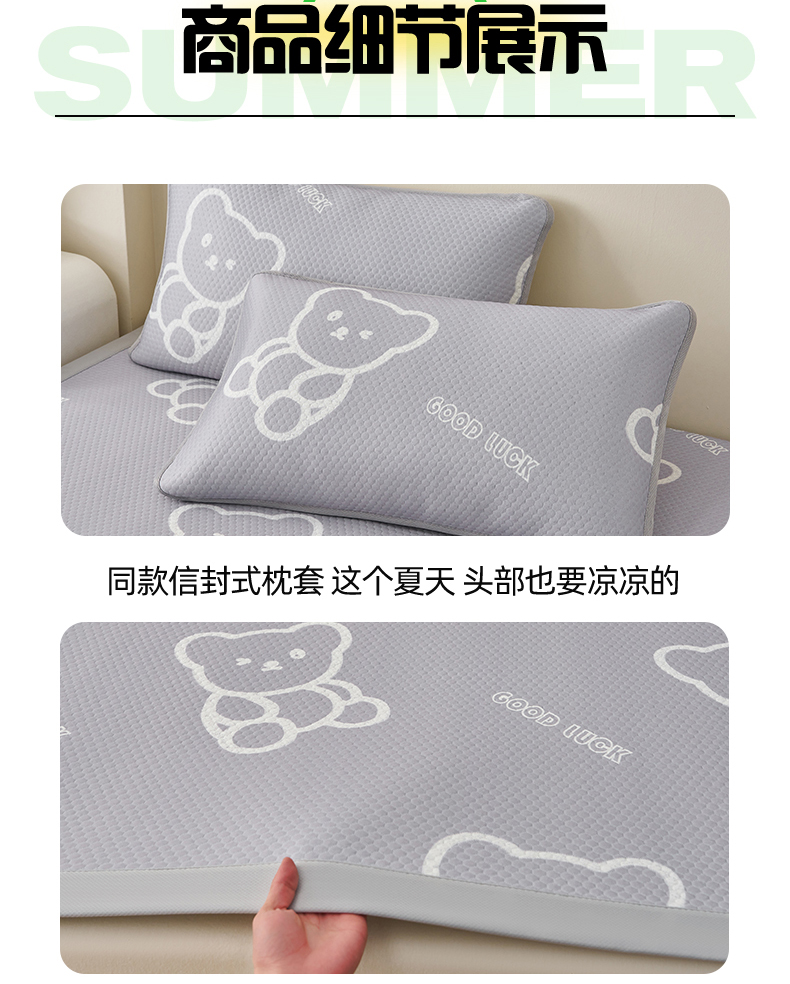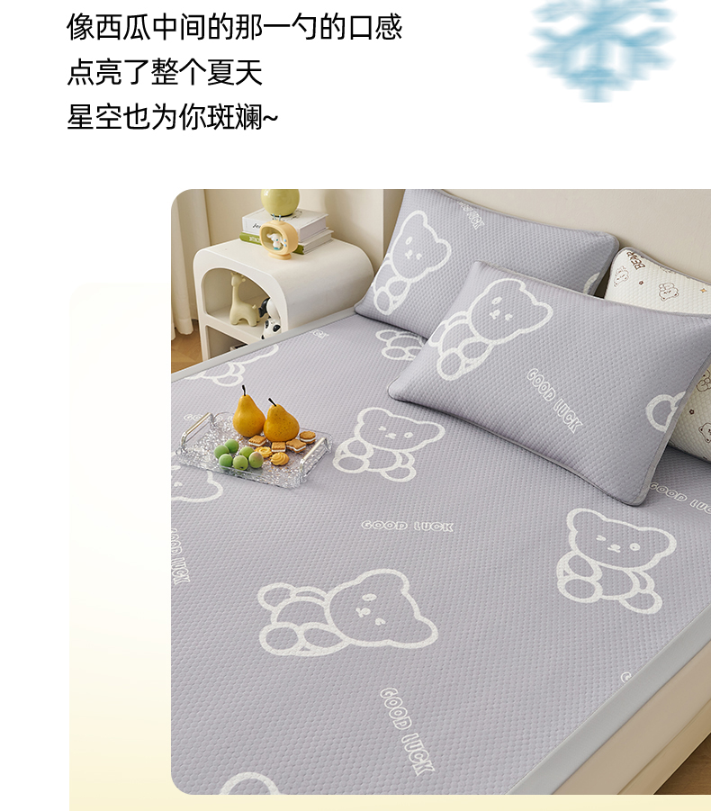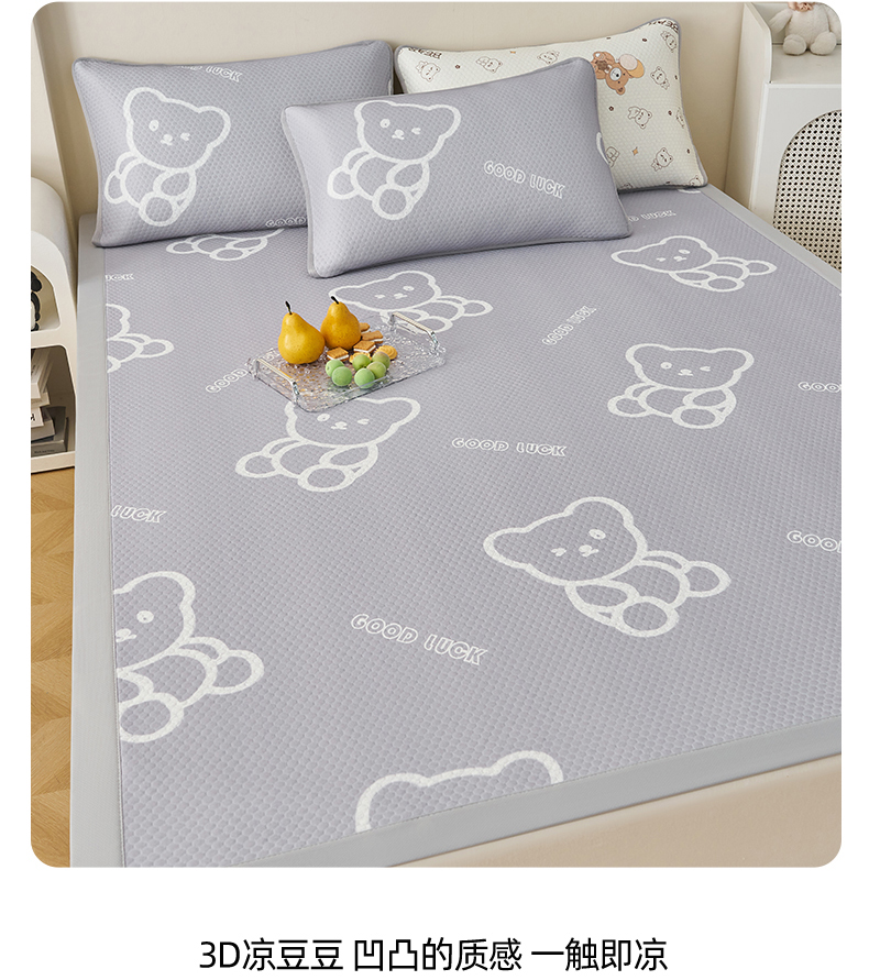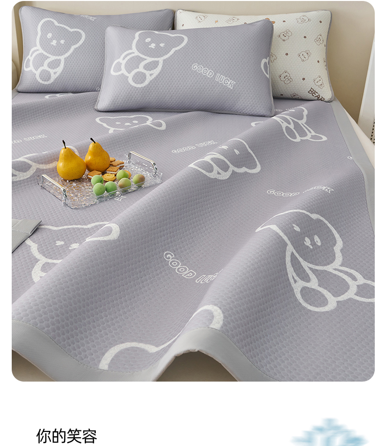 (总)奇丝雅 2026新款夏季A类真PE凉感冰豆豆凉席冰丝床单单件冰丝席可机洗单人-学生床,八宝熊-灰,八宝熊-咖,八宝熊-蓝,八宝熊-绿,八宝熊-粉