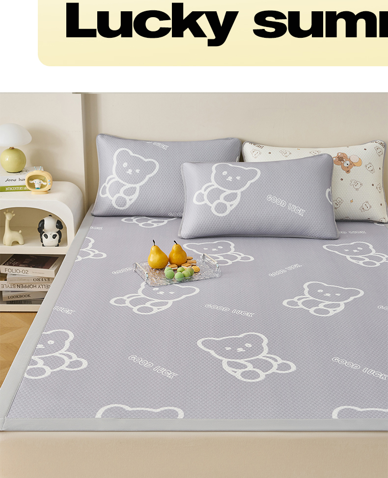 (总)奇丝雅 2026新款夏季A类印花冰豆豆凉席三明治透气网冰丝凉席可机洗学生宿舍上下铺学生床,巴比兔,抱抱熊,饼干熊,海洋世界,卡皮巴拉,蘑菇乐园,甜甜圈,兔宝贝,维尼熊,小企鹅,熊猫家园,叶语