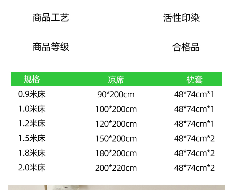 180x200cm单凉席+枕套一对