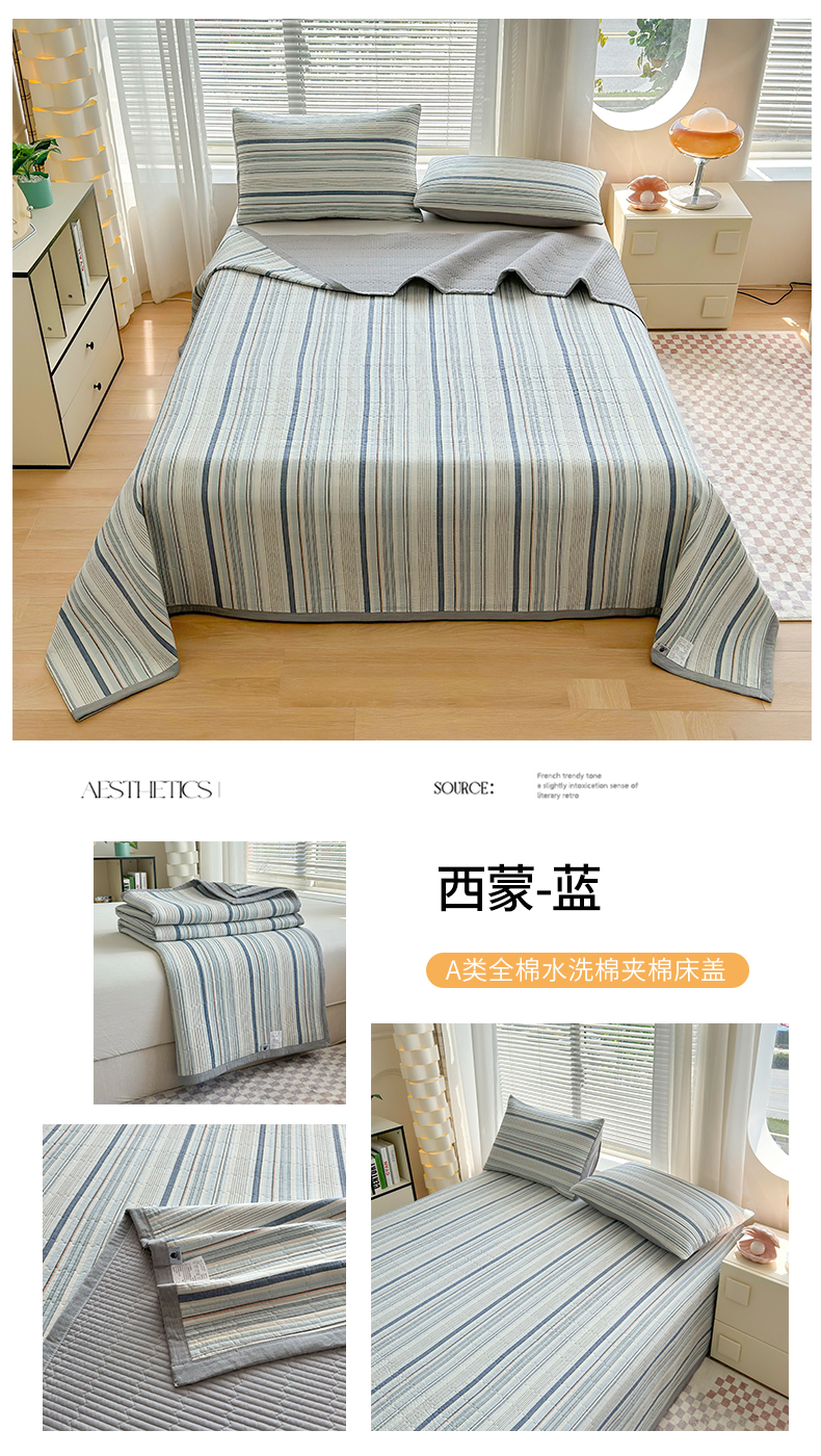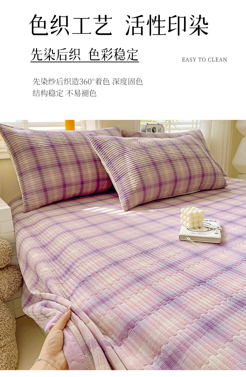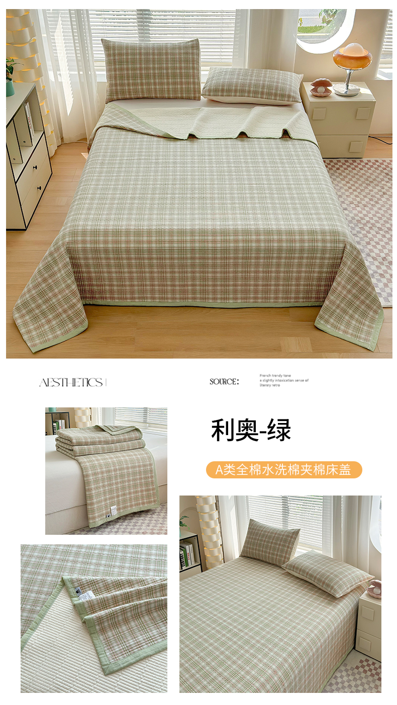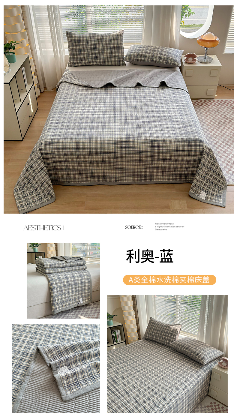 商品名称:(总)梦精灵家纺 2026新款全棉床盖单件色织水洗棉绗缝夹棉床单 四季通用榻米防滑学生宿舍单人被套枕套