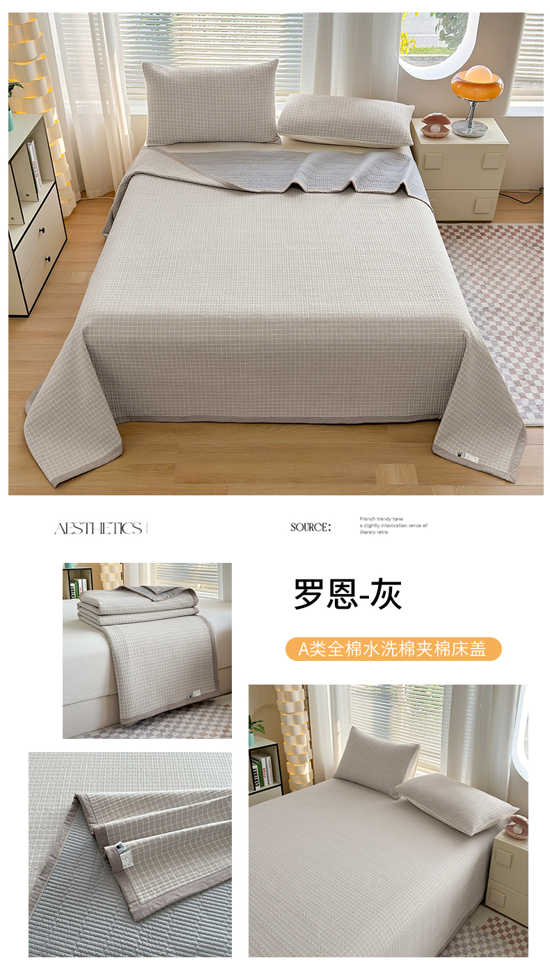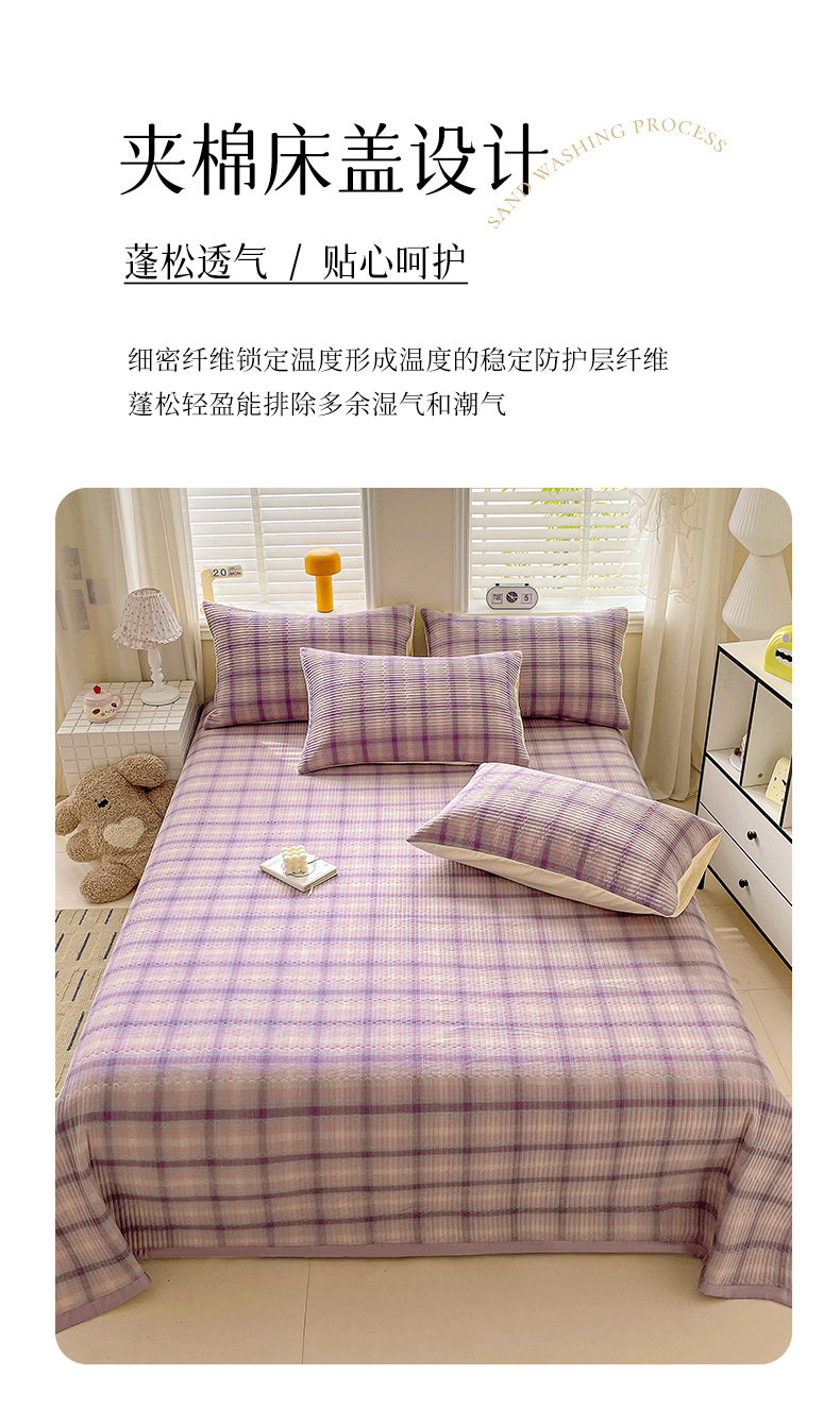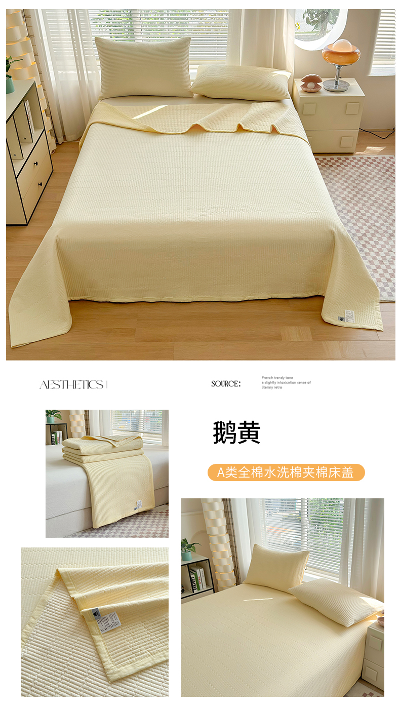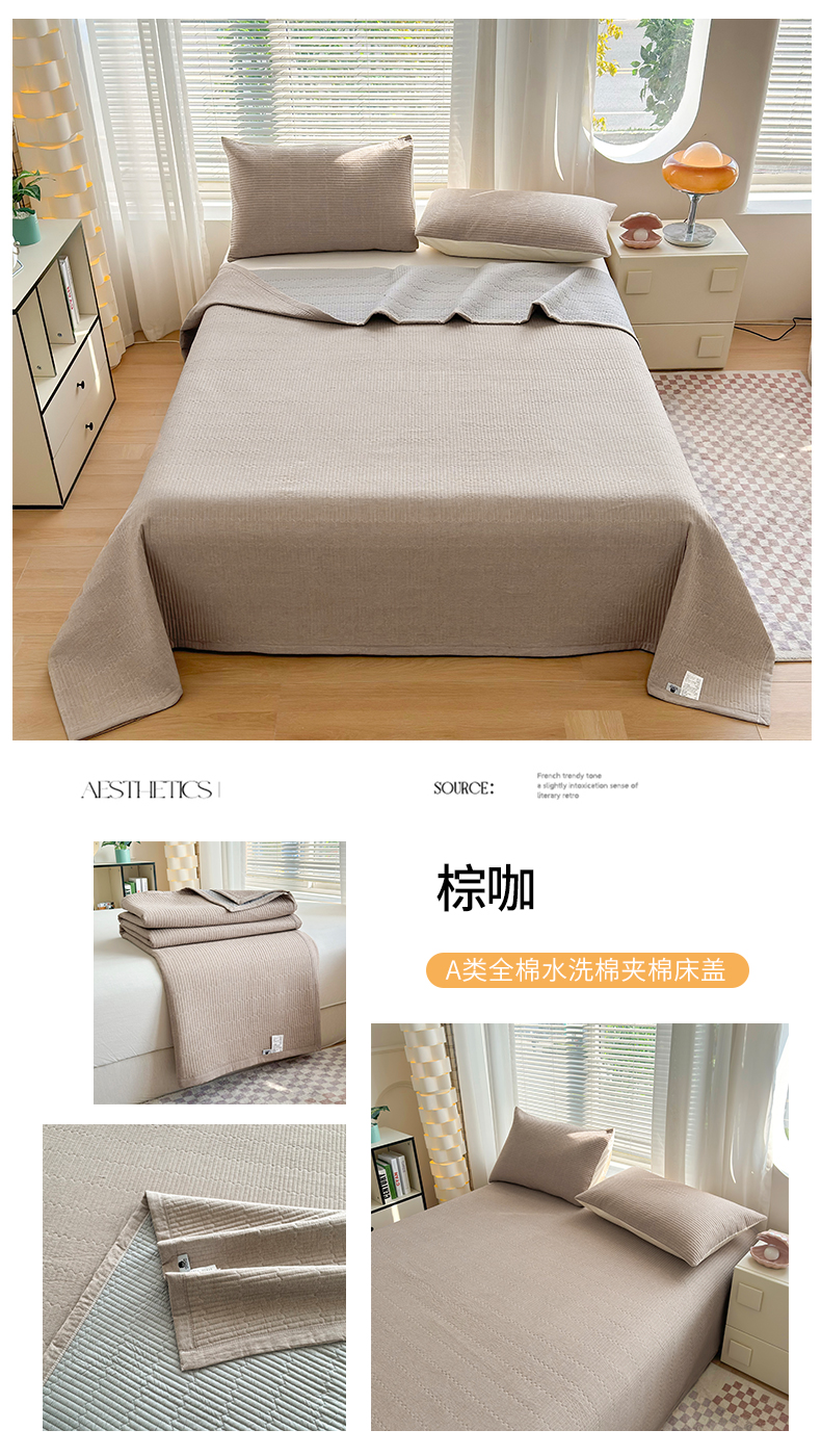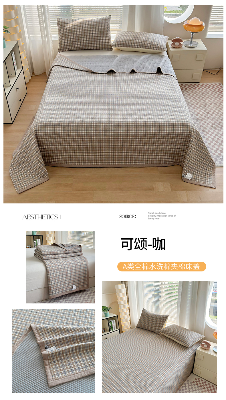 商品名称:(总)梦精灵家纺 2026新款全棉床盖单件色织水洗棉绗缝夹棉床单 四季通用榻米防滑学生宿舍单人被套枕套