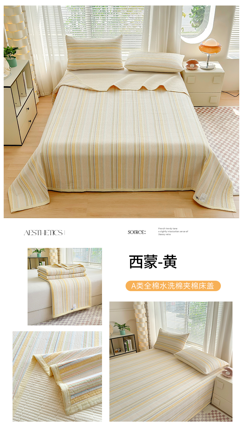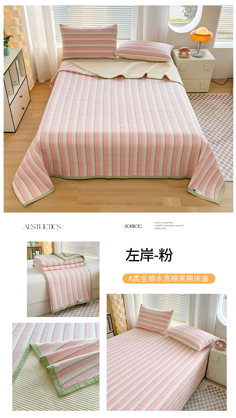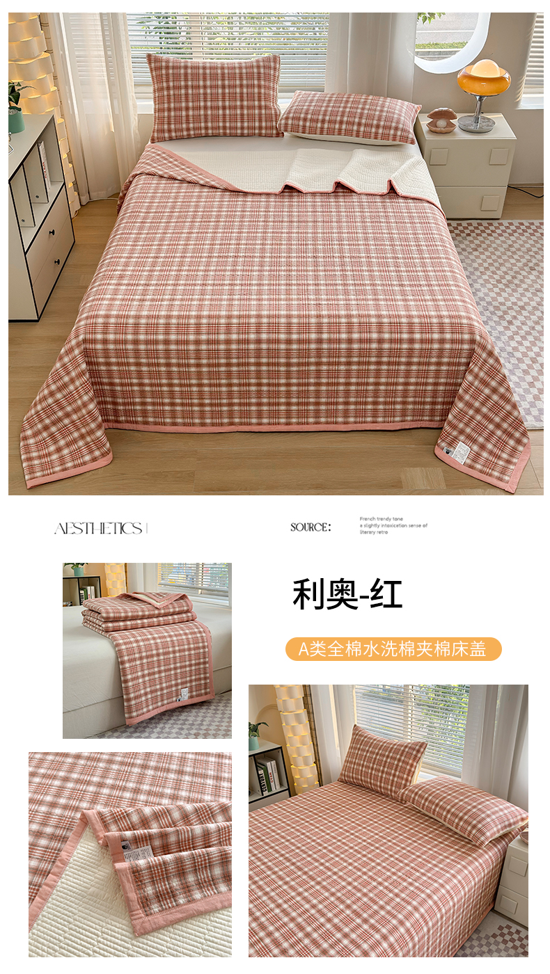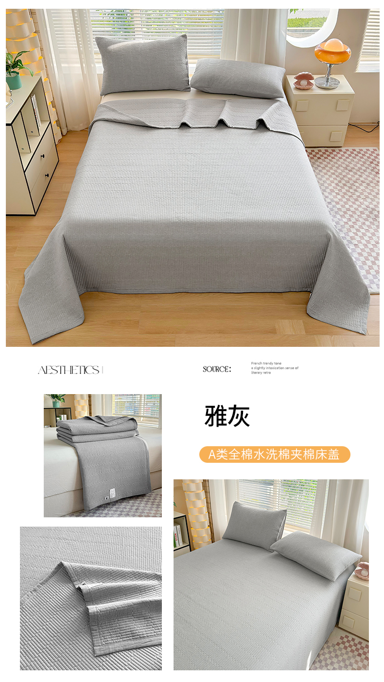 商品名称:(总)梦精灵家纺 2026新款全棉床盖单件色织水洗棉绗缝夹棉床单 四季通用榻米防滑学生宿舍单人被套枕套