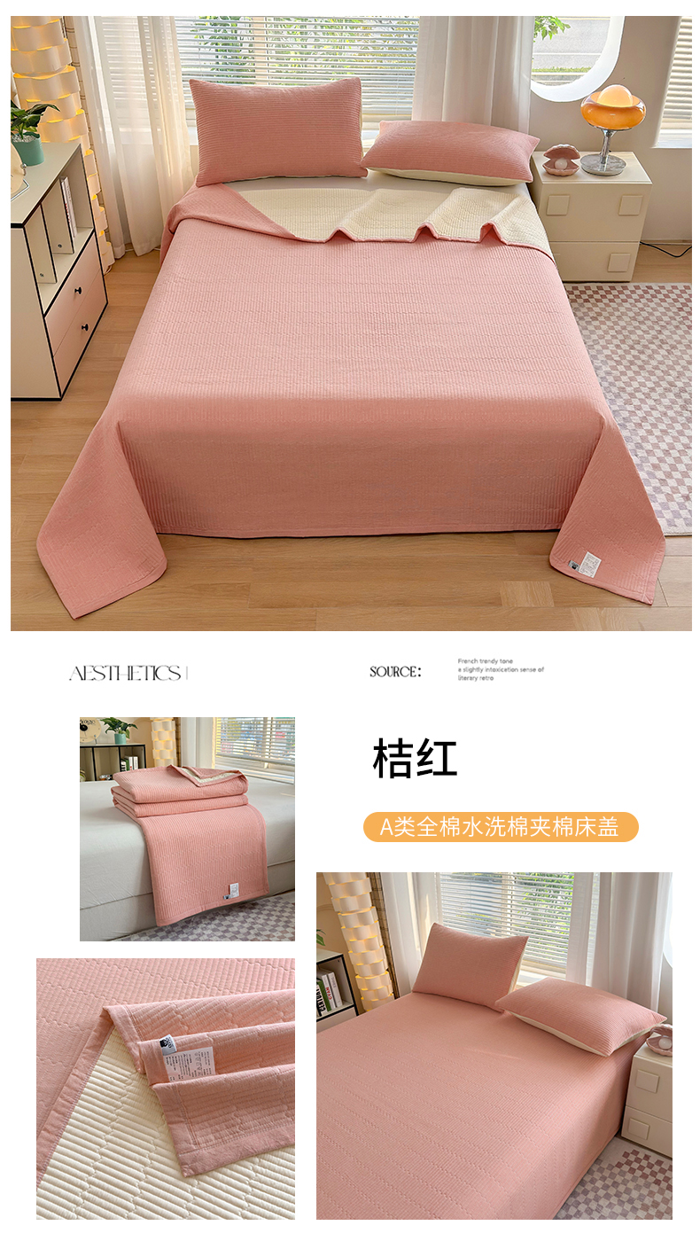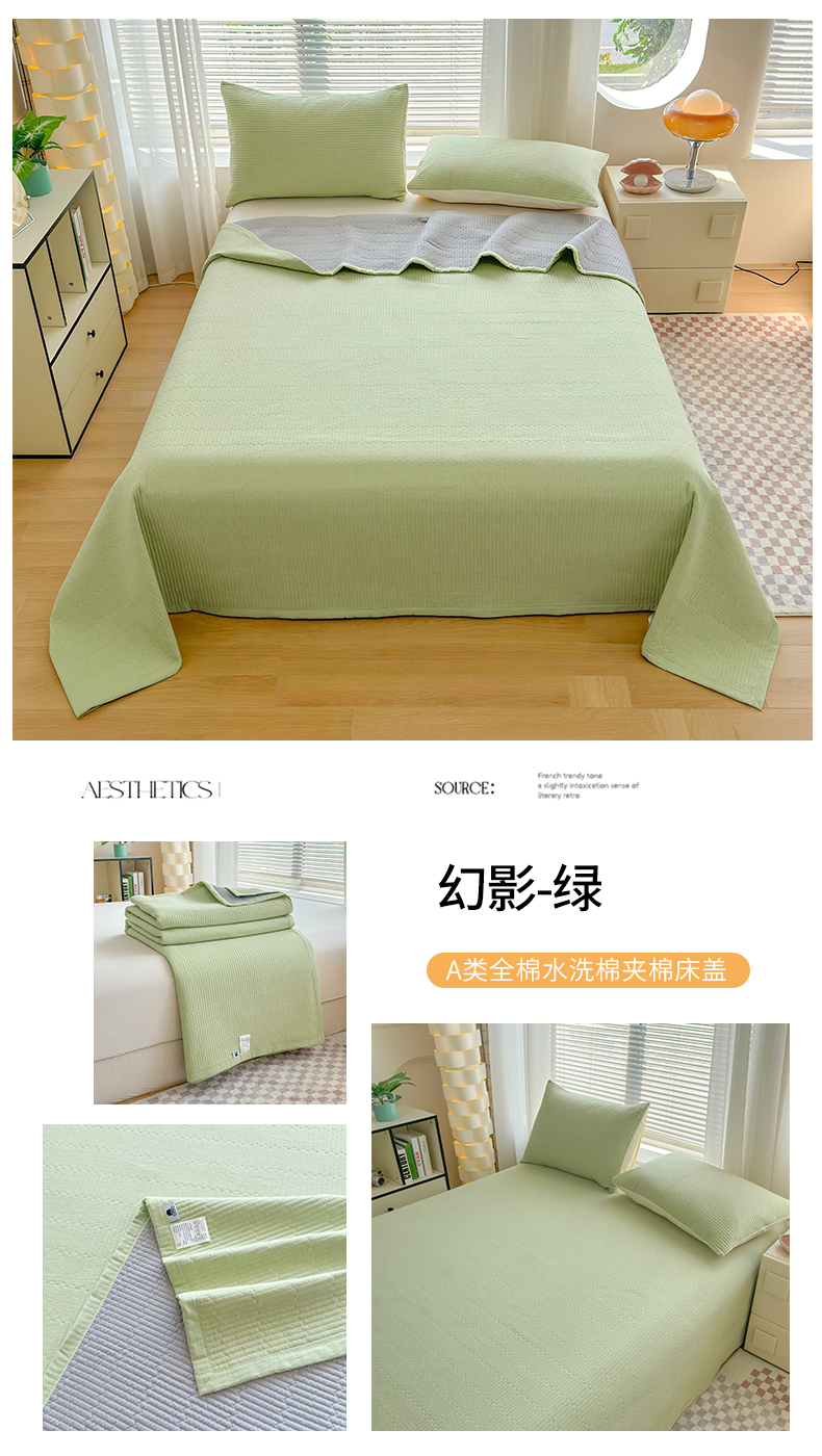 (总)梦精灵家纺 2026新款纯色全棉床盖单件纯棉绗缝夹棉床单 四季通用榻榻米防滑学生宿舍单人床盖枕套,素境-粉,素境-蓝,素境-绿,素境-紫,素境-灰,素境-咖