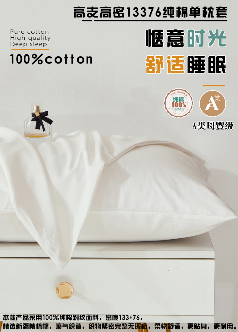 晶缦家纺 2026新款喷气A类全棉13376纯棉斜纹纯色单枕套单品枕套枕套单件 沐朗-本白
