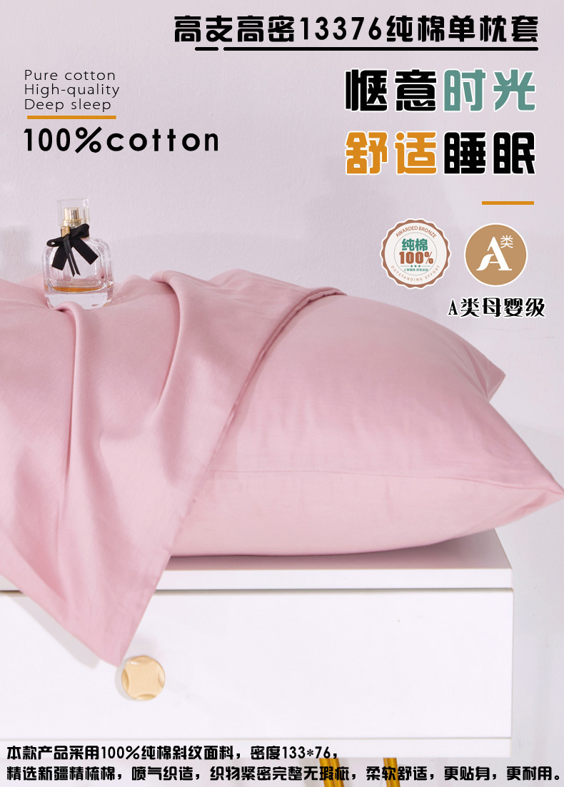 商品名称:晶缦家纺 2026新款喷气A类全棉13376纯棉斜纹纯色单枕套单品枕套枕套单件 沐朗-脏脏粉