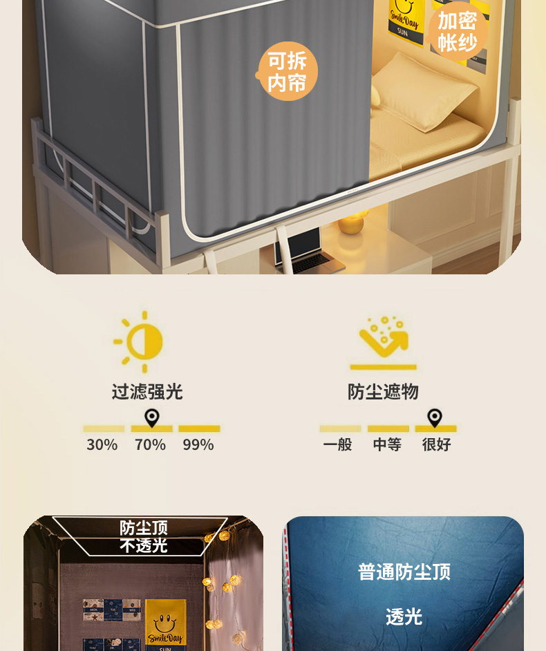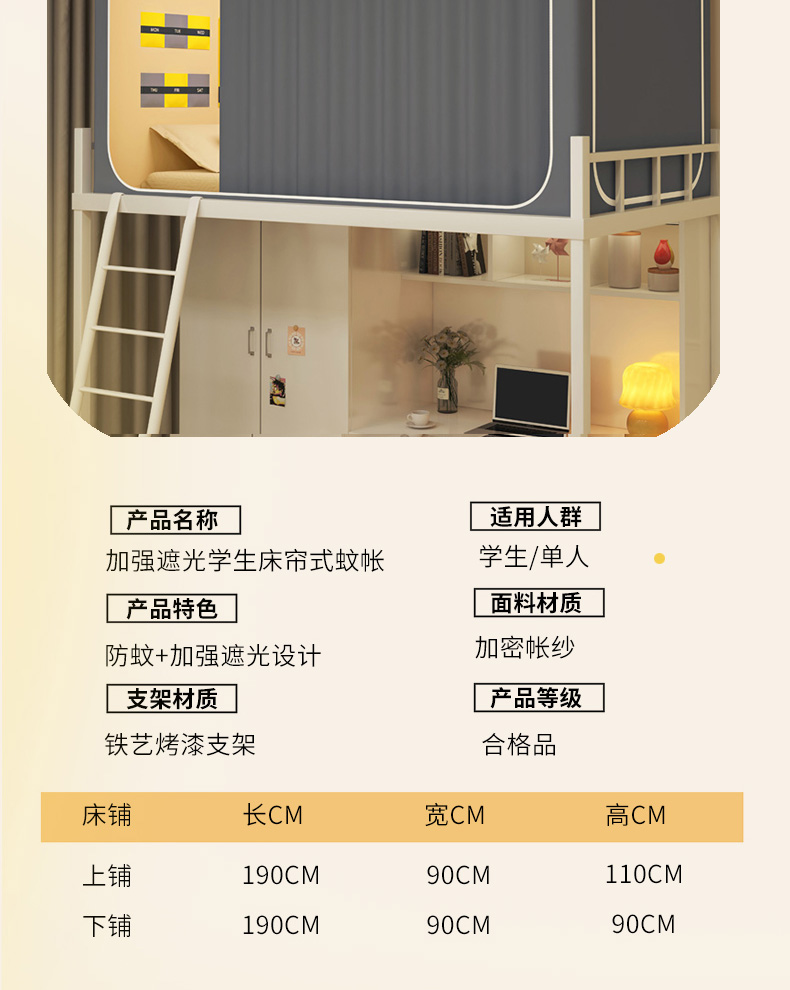90上下铺通用(带靠墙帘):90宽x190长x90-120高(高度伸缩) | ¥100.00 |